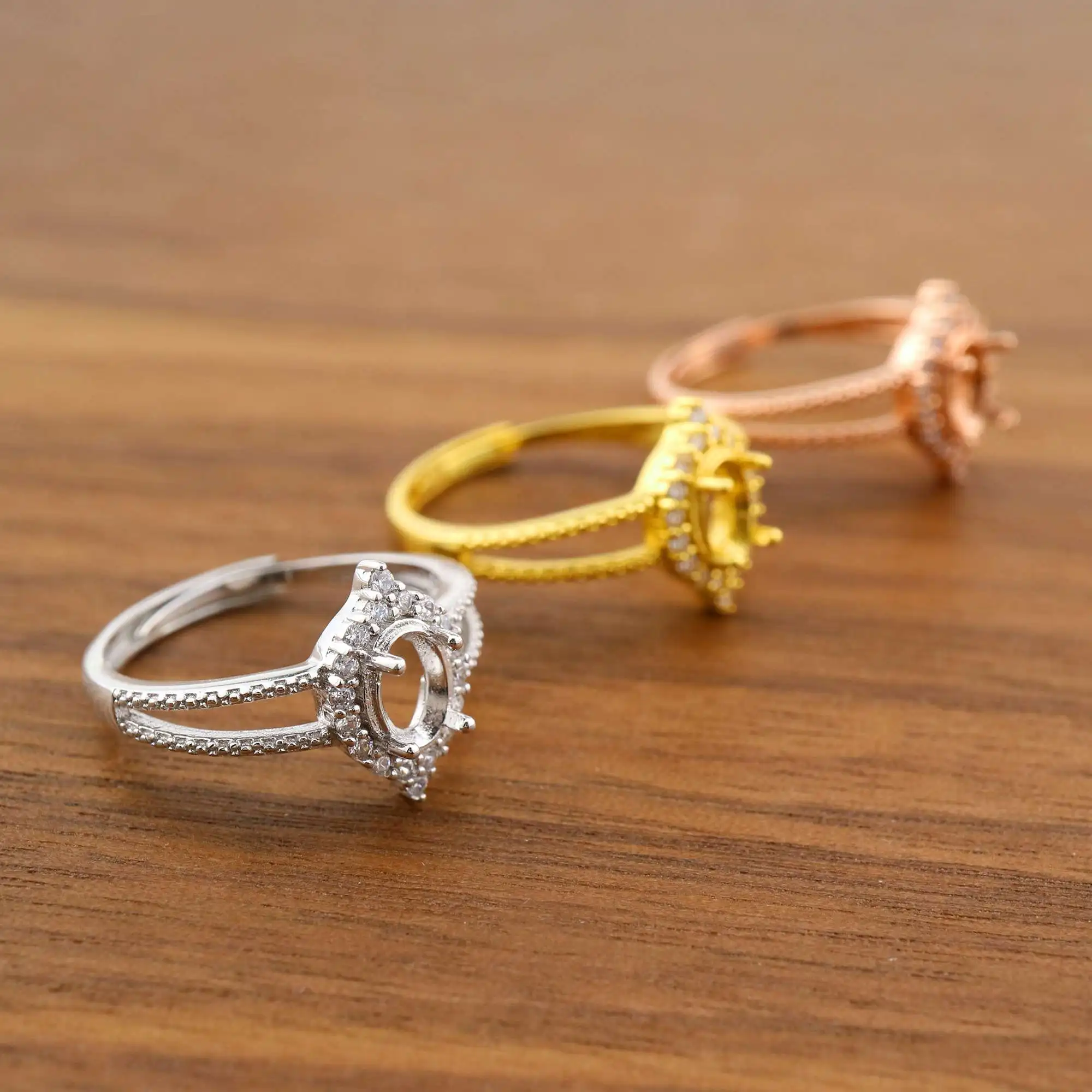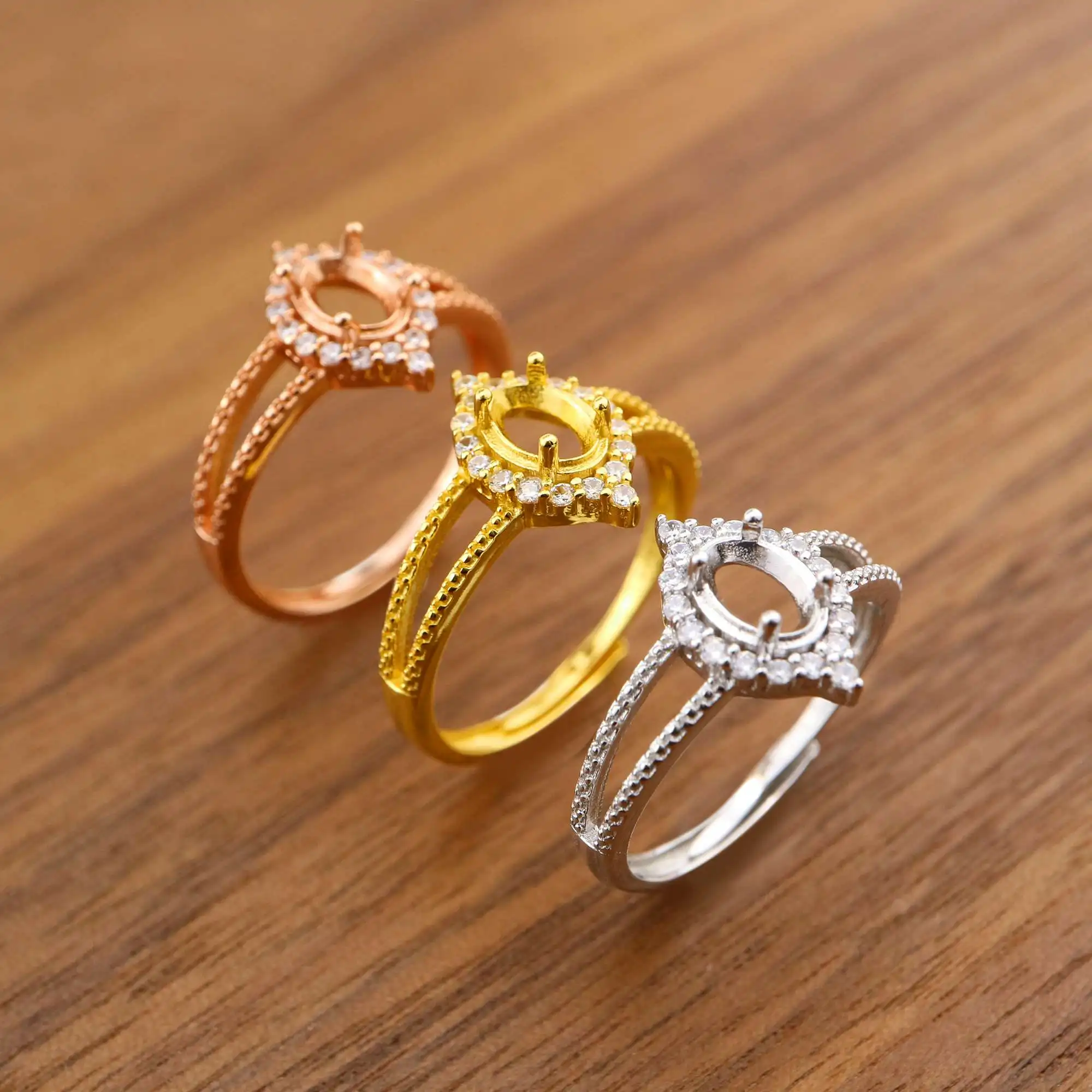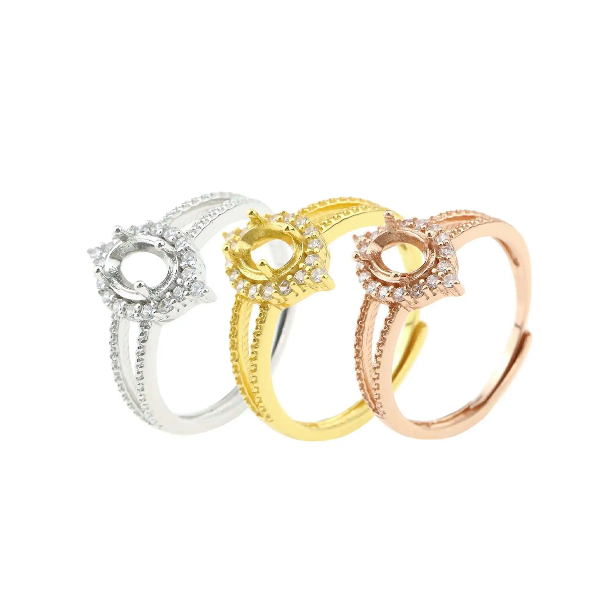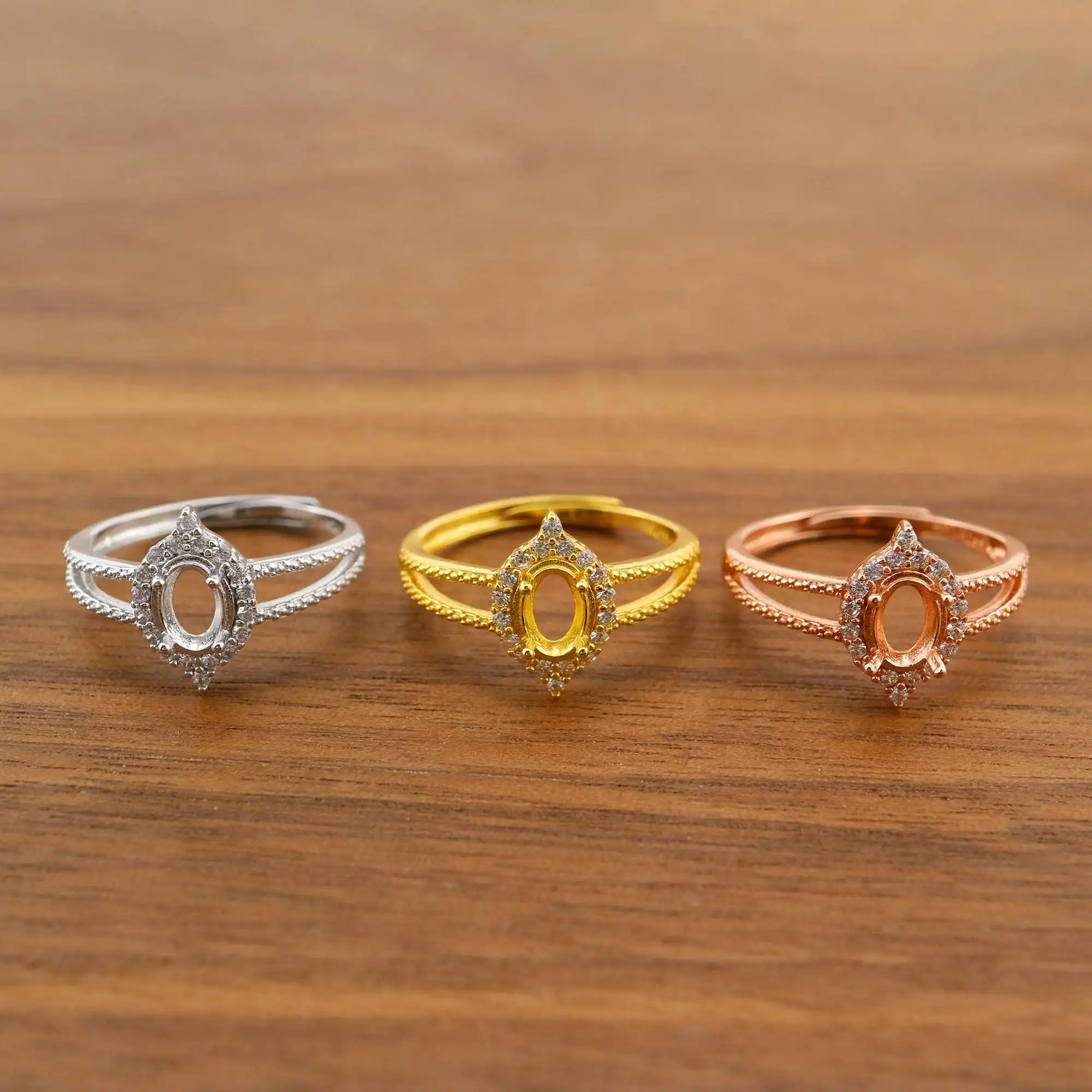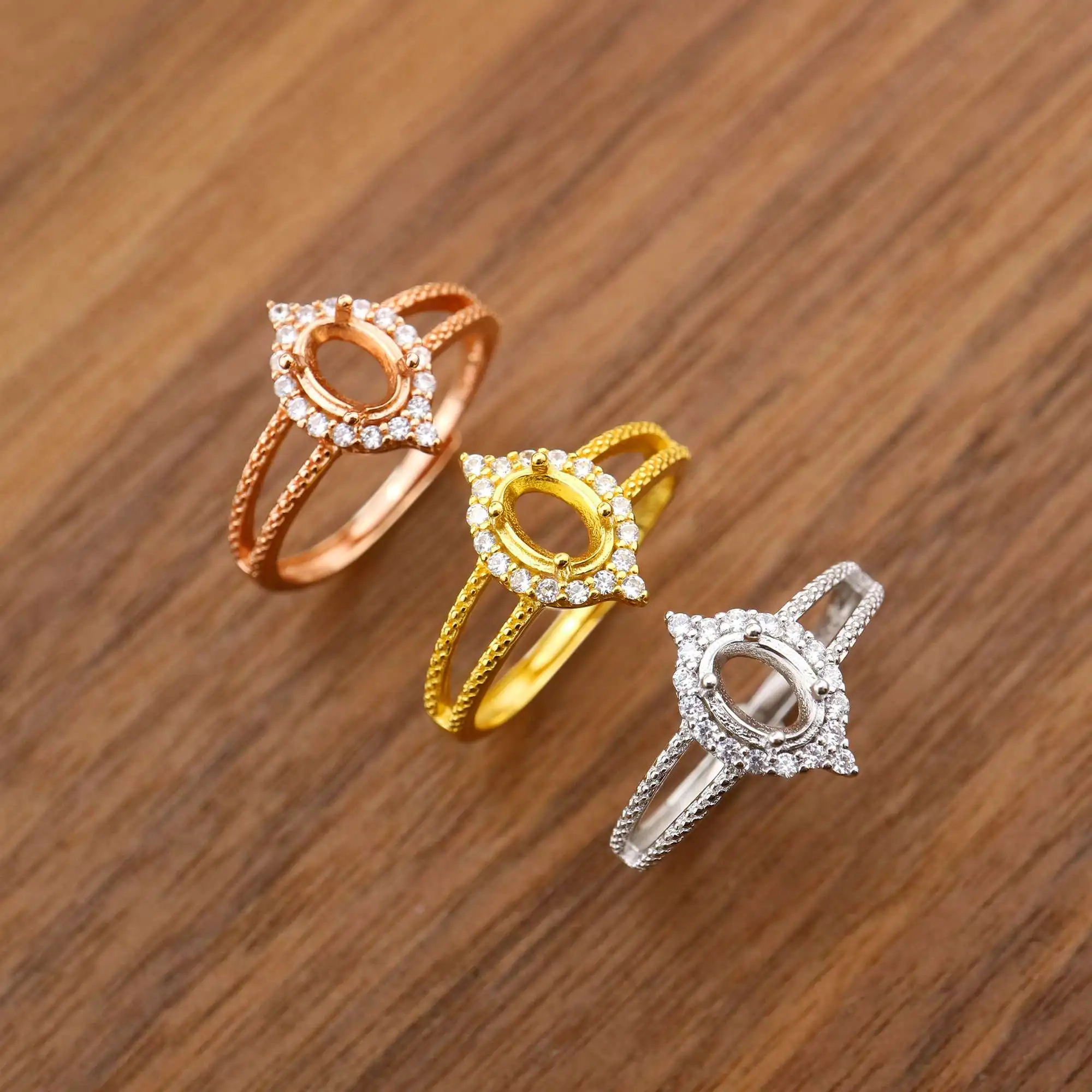 Кольцо с овальным зубцом 4x6 мм, твердое розовое белое золото 14K/18K с акцентами из муассанита, поднос в винтажном стиле «сделай сам» для бриллиантовых драгоценных камней 1224062
