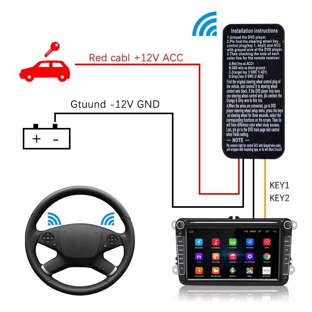 Podofo Универсальный многофункциональный пульт дистанционного управления на руле для 2DIN Android Радио мультимедийный плеер беспроводной Bluetooth