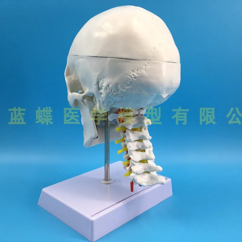 本模型由头骨和 7 节颈椎组成,带颈椎动脉,有底座.