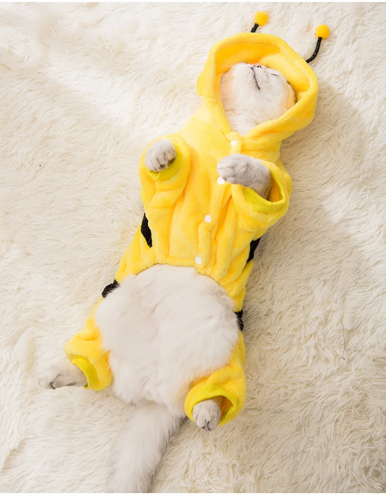 Одежда для собак, костюм для питомцев кошек, Рождественская одежда, осенне-зимний фланелевый теплый костюм для домашних животных с изображением медовой пчелы