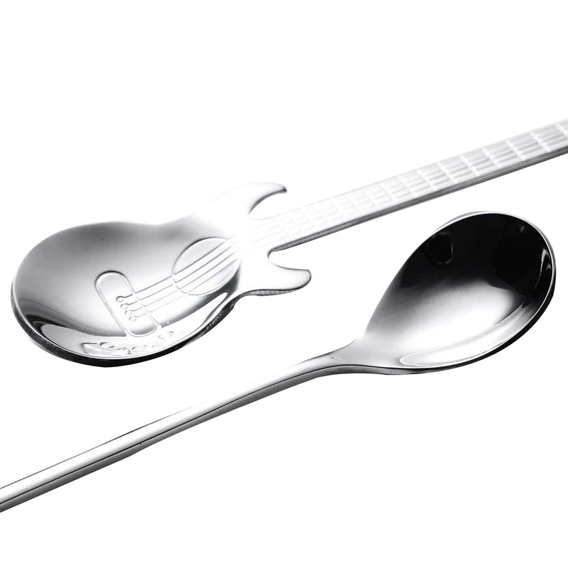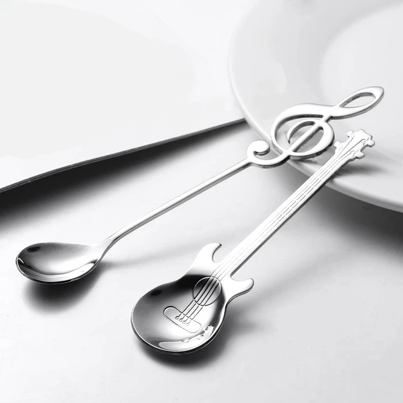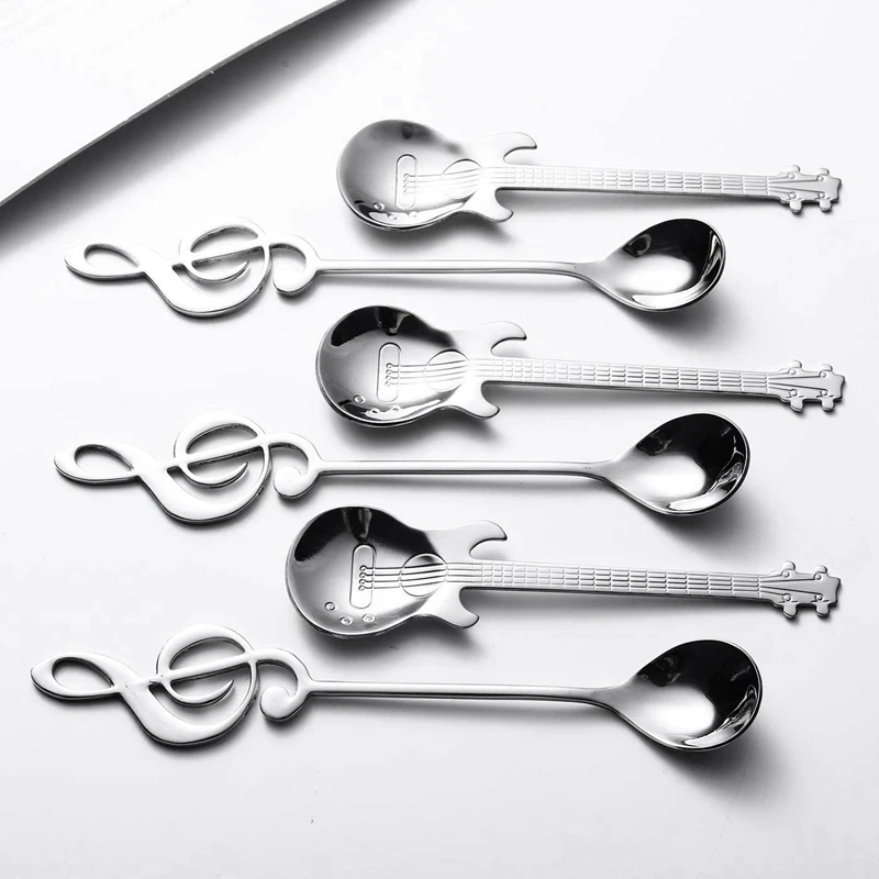Кофейные ложки, 6 упаковок, креативные милые чайные ложки из нержавеющей стали, музыкальные нотации (3 нот + 3 гитары)