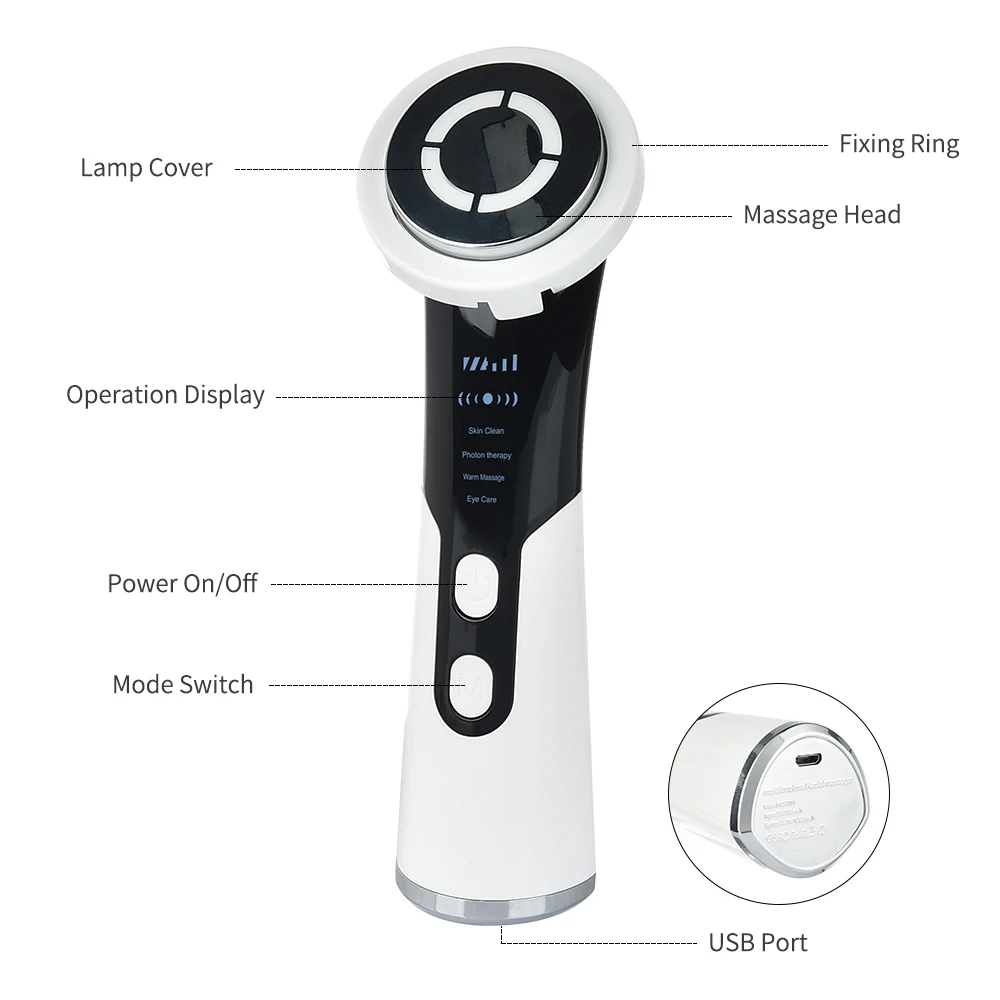 4 в 1ОсобенностиMultifunctional [4 в 1 дизайн] многофункциональное косметическое устройство для лица содержит положительные ионы и отрицательные ионы, микровибрацию, постоянное нагревание, И светодиодный фотон для полного удовлетворения различных требований по уходу за кожей для глубокого очищения и омоложения кожи, полезная помощь для восстановления вашей истинной красоты после длительного непрерывного использования.Use [Ion + Lead Out] используйте с хлопчатобумажными прокладками, закрепленными верхним кольцом, для усиления очищающего эффекта удаления остатков макияжа и грязи в глубоких порах.❸ [Ионно-свинцовый] эффективно улучшает эффективность поглощения питанием для более эффективного ухода за кожей, также может помочь сохранить ваши продукты по уходу за кожей.❹ [Микро Вибрация] способствует метаболизму клеток кожи, улучшая эластичность кожи, делая ее более плотной и гладкой.❺ [Постоянный нагрев] устраняет усталость кожи с успокаивающим и снимающим теплый массаж, а также обеспечивает более глубокое поглощение эссенции с усиленным кровообращением.❻ [Красный светильник] с длиной волны 640nm-650nm, это поможет выделить коллаген и ускорить обмен веществ, чтобы сделать вашу кожу твердой и блестящей в гладкой текстуре.Окислитель [синий светильник] подавляет рост акне с анти-воспалением и эффектом восстановления кожи, чтобы уменьшить риск оставления шрамов.❽ [Интеллектуальная работа] простое управление кнопками для свободного переключения режимов, регулировка интенсивности и мгновенное включение и выключение питания, И светильник индикатора и четкий дисплей позволяют проверить прямое и четкое состояние, чтобы вы были полностью готовы к плавной работе.Перезаряжаемый аккумулятор емкостью 1200 мА · ч, работающий в режиме непрерывного пользования, может быть напрямую подключен к зарядке через USB, вы можете без труда получить доступ к блоку питания через компьютер, адаптер, блок питания и многое другое для беспроводного использования.Комфортный [удобный уход за кожей] устойчивый дизайн подошвы гарантирует надежное размещение на плоской и гладкой поверхности, не требует дополнительной подставки, подходит как для дома, так и для путешествий, помогает снять мышечное напряжение и усталость лица, удаляет темные круги, мешки для глаз, выцветают линии, морщины и т. д.Технические характеристикиМатериал: АБС-пластикЦвет: белыйВход: 5 В/500 мАчВыход: 3,7 V/1200mAhМощность: 4 ВтНоминальная Напряжение/Номинальная Ёмкость: 3,7 V/500mAhЕмкость аккумулятора: 1200 мАчРежимы работы: режим очистки кожи/режим фотонной терапии/режим теплого массажа/режим ухода за глазамиУровень интенсивности: 3 регулируемых уровняВремя зарядки: около 3 часовРазмер изделия: прибл. 4,5*5,5*17 см/1,77*2,16*6,69 дюймовПримечаниеПожалуйста, учитывайте некоторые отклонения из-за ручного измерения и убедитесь, что вы не возражаете перед покупкой.Цвет фактического товара может немного отличаться от изображения из-за различных компьютерных экранов и настроек дисплея.Спасибо за понимание!Посылка в комплекте1 * очищающее устройство для омоложения (основной блок)1 * USB кабель1 * Руководство пользователя![]()