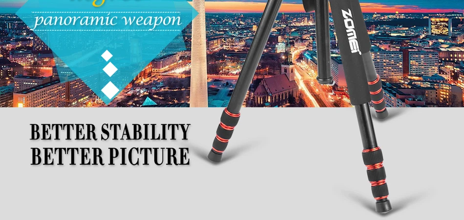 7: Нескользящие резиновые ножки для повышения стабильности на скользких поверхностях. В качестве бонуса ZOMEI Z818 поставляется с привлекательной сумкой для штатива.