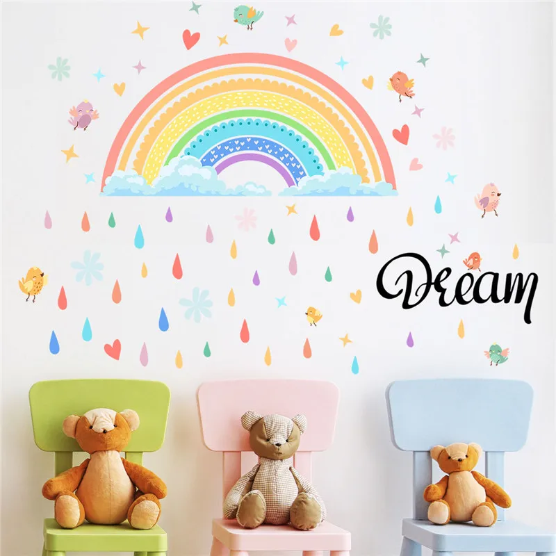 Красочные радужные настенные наклейки для детской комнаты, декоративные наклейки для детской комнаты, детские наклейки для спальни