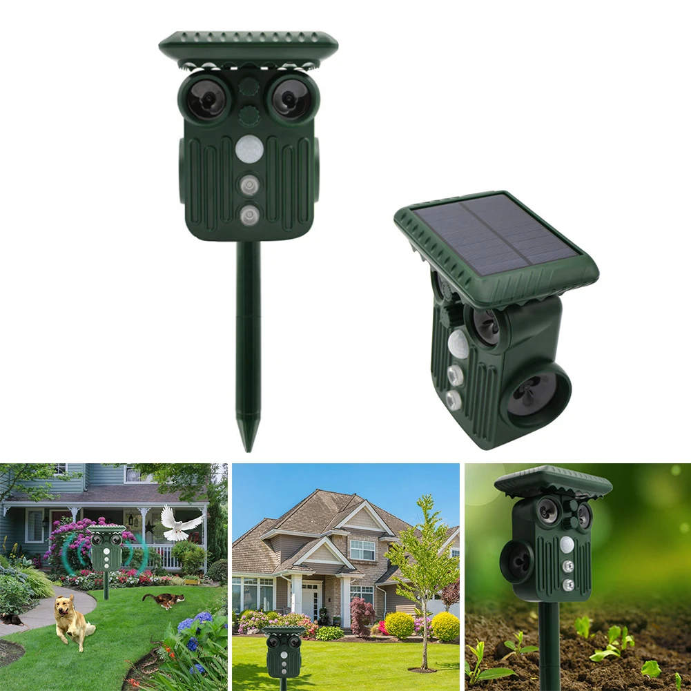 Animal Repeller Solar Power Motion Activated Ultrasonic Bird Cat Dog Repeller Frighten Animal Repellent For Outdoor Gardening