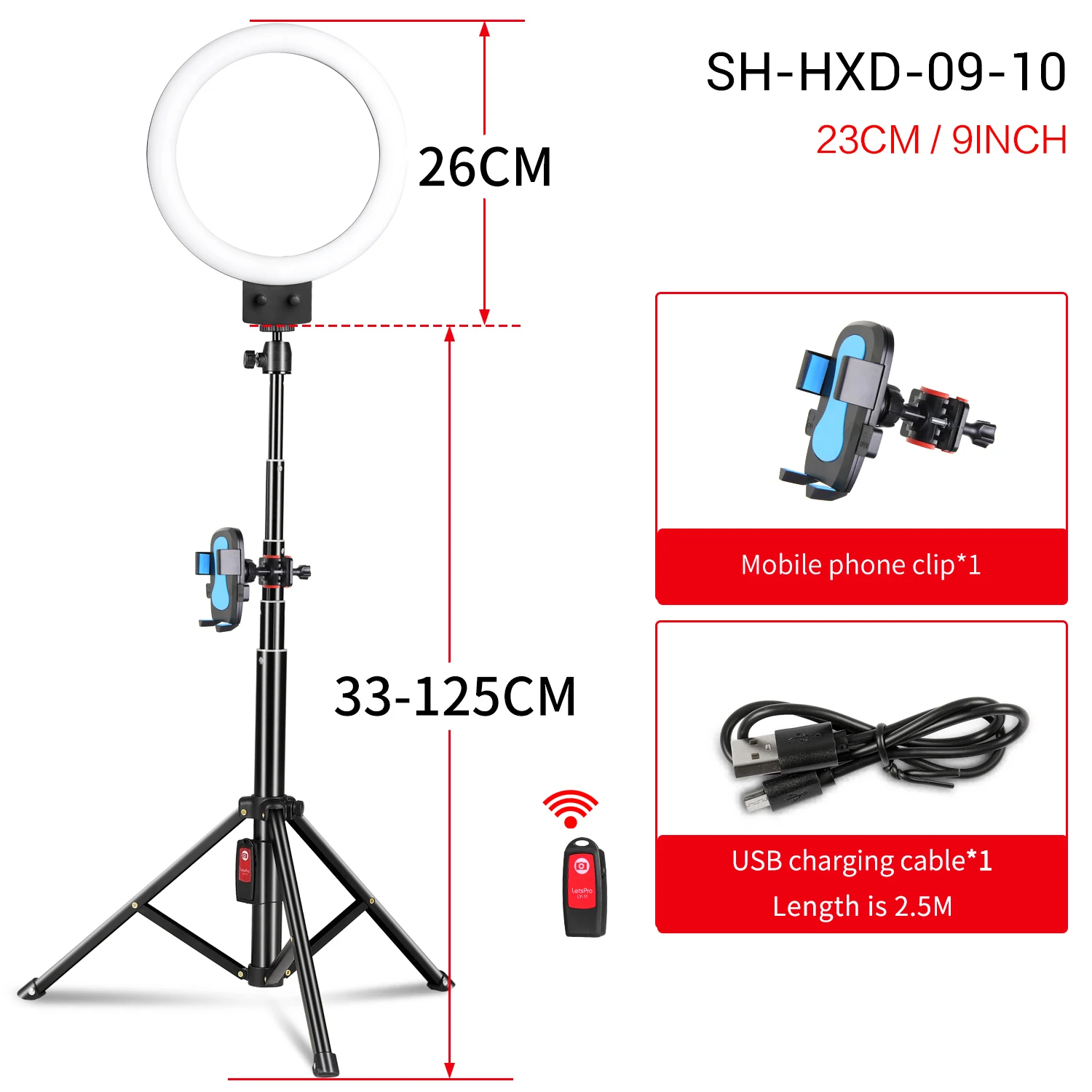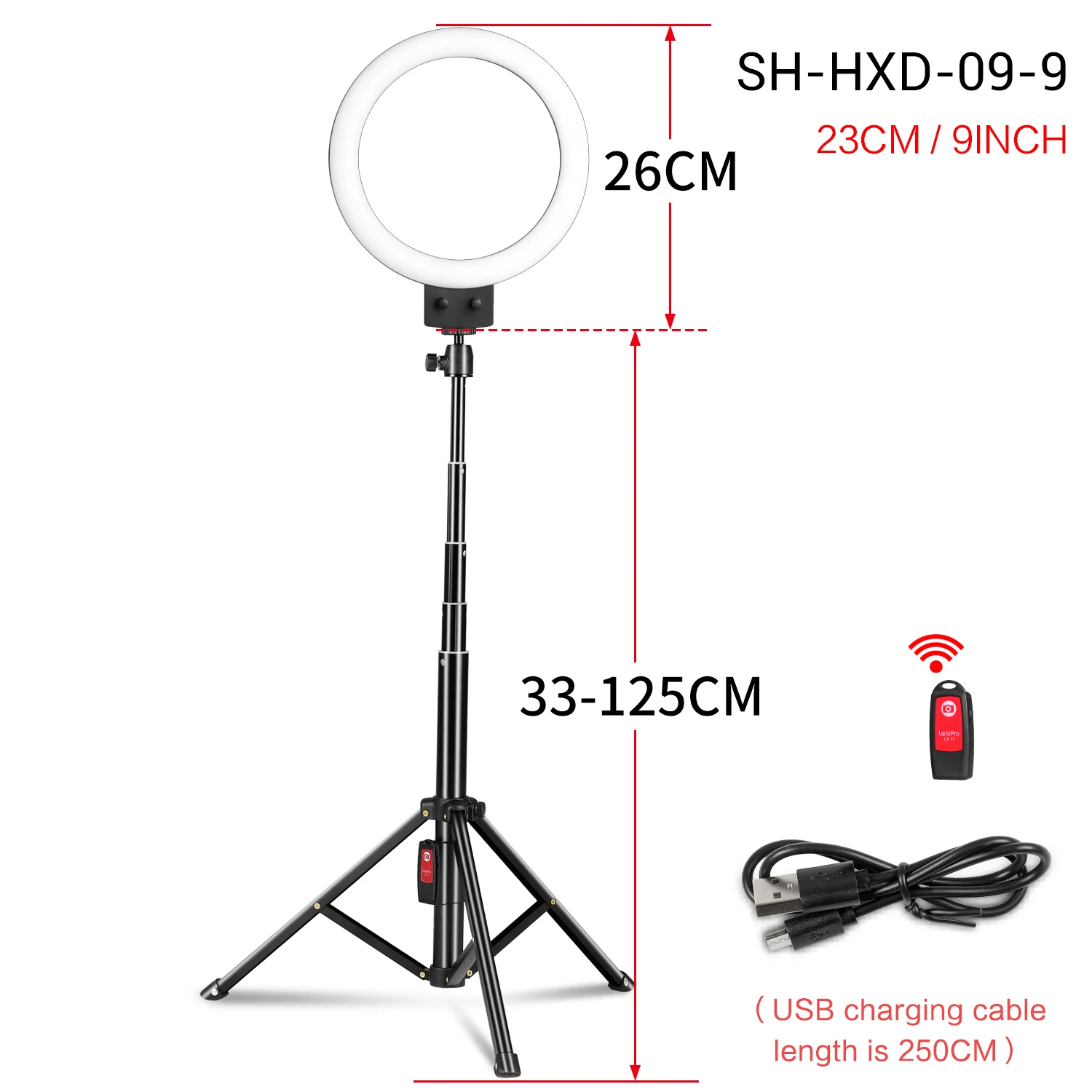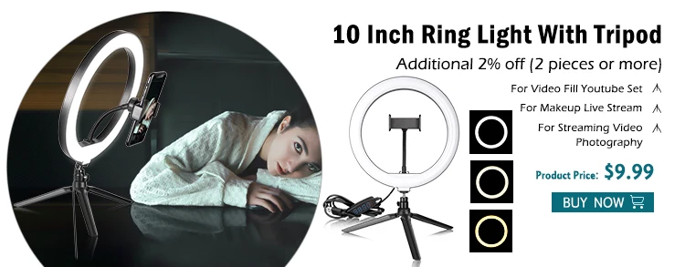 9 дюймов кольцевой светильник: с регулируемой яркостью и регулируется, вы можете отрегулировать светильник влияние от 1%-100%. Кольцевой светильник для селфи делает вас более привлекательным и очаровательным.