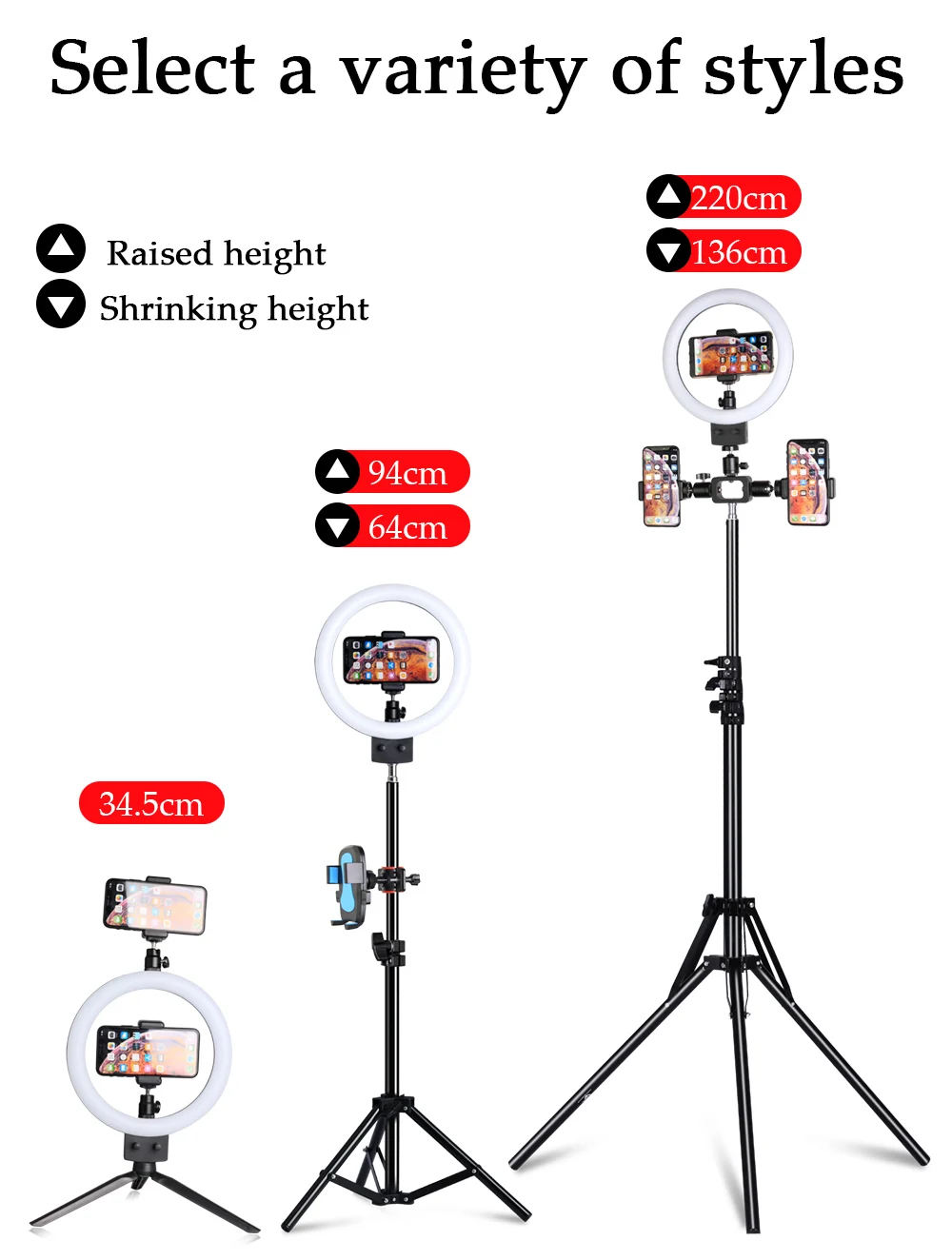 Многофункциональный штатив: Этот мини-штатив подходит для кольцевого светильник, телефона и камеры.