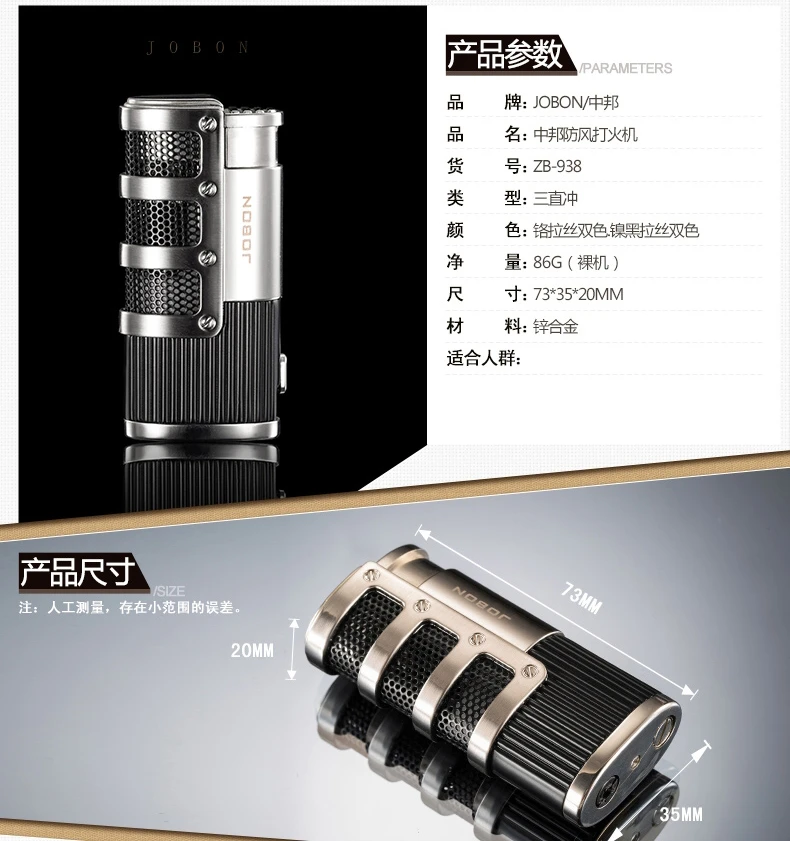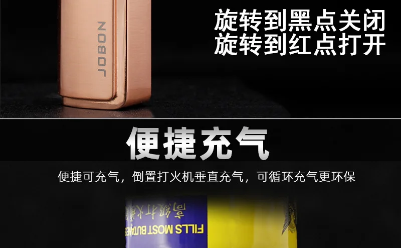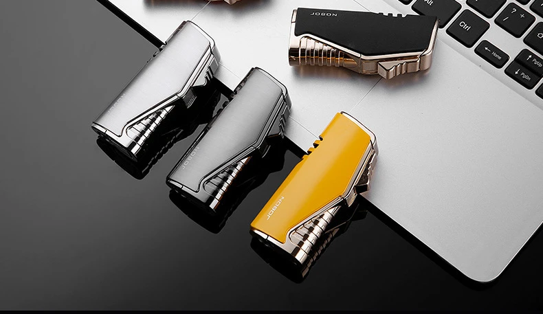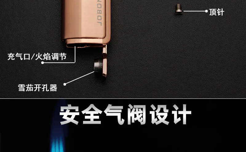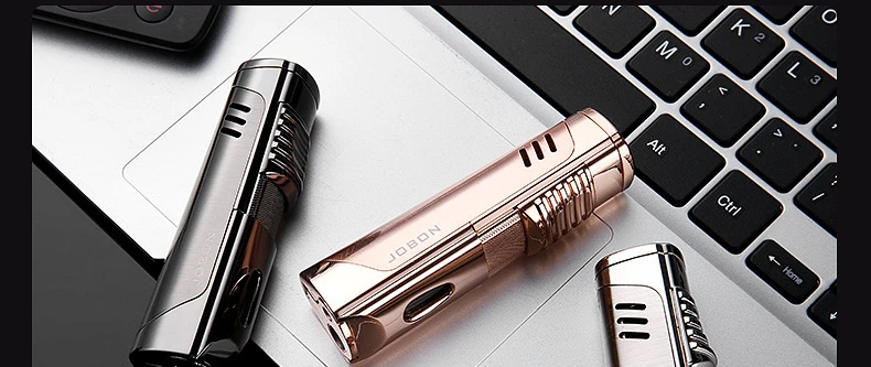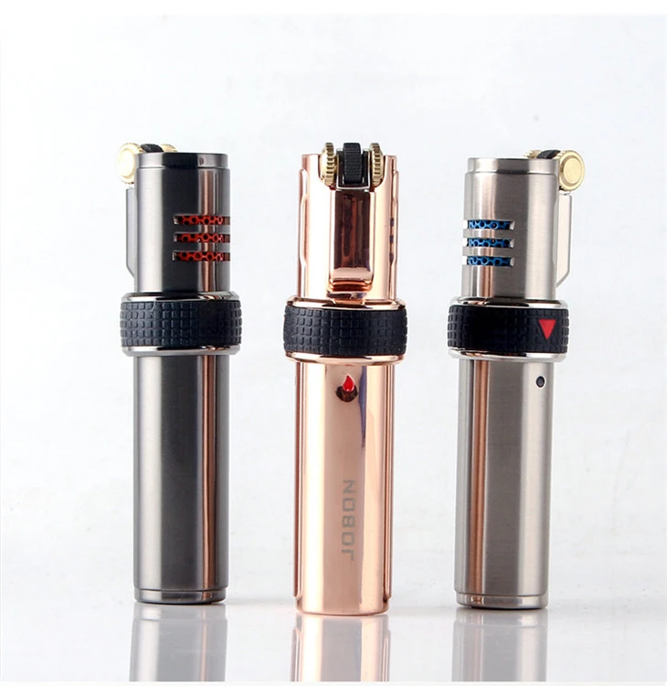 JOBON металлический тройной фонарь, зажигалка для воспламенения сигарет, зажигалка, резак, видимое газовое окно с защитой пламени от ветра, гаджеты для мужчин