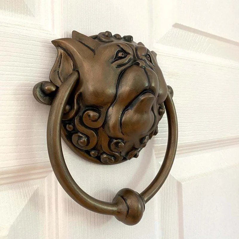 Этот тщательно разработанный дверной молоток с изображением лица дракона с замысловатой детализацией делает его похожим прямо из периода средневековой эпохи