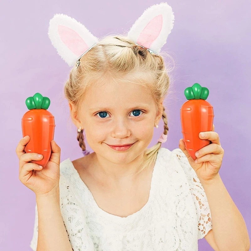 Практичные контейнеры для моркови: яркие контейнеры для моркови оранжевого цвета можно использовать для хранения монет, закусок или легких игрушек, они являются новыми подарками для маленьких девочек и мальчиков, принося хорошие воспоминания маленьким парням; пластиковые корзины для моркови хорошо подходят для пасхальных яиц, вечерние.