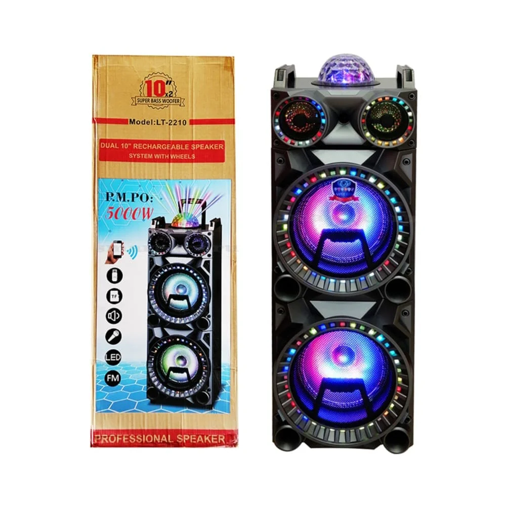 КОЛОНКА LT-1203 - популярная модель у поклонников качественного звука. Цена обусловлена сочным звучанием с хорошо различимыми басами и другими регистрами. Стабильной работой даже при постоянном интенсивном использовании. Колонки позволяют воспроизводить аудио информацию с разных устройств. Оборудование выполнено в надежном корпусе из износостойких материалов, легко переносит транспортировку и подключается.Колонка LT-2210 с цифровым mp3-плеером поставляется с воспроизведением через USB / SD / AUX и подключением Bluetooth, что делает его портативной аудиосистемой с утонченным дизайном, которая имеет множество функций и режимов использования. Встроенная батарея обеспечивает автономность системы, поэтому ее можно использовать где угодно. Колонка легкая благодаря мобильным колесам. Устойчивый к ABS корпус обеспечивает гибкость и портативность системы. Возможность установки на опоре или в комплекте оборудования, дает возможность монтажа на любой сцене. В отличие от других портативных динамиков на тележке, LT-2210 оснащен беспроводным микрофоном, что является огромным преимуществом при организации мероприятий. LT-2210 идеально подходит для частных мероприятий, вечеринок или прогулок на свежем воздухе.Технические характеристики производителя: - Расстояние приема сигнала Bluetooth: прибл. 10м - встроенный усилитель - Динамик 33 см*2 - DIN 40 Ватт- RMS 160 Ватт - PMPO 5000 Ватт- Чувствительность 85 кГц - Частотная характеристика 60 Гц - 18 кГц - Встроенная батарея с высокой автономностью (4-10 часов в зависимости от объема) - Беспроводное соединение через Bluetooth - Воспроизведение MP3 через USB-накопитель, карту MicroSD или кабель Jack (Aux) - Ручка (тележка) в верхней части для быстрой транспортировки с помощью двух задних колес - Параметры 63*37*30 см - Вес: ~ 15,2 кгКомплектация: Колонка, пульт, микрофон, фирменная упаковка, зарядное устр-во.