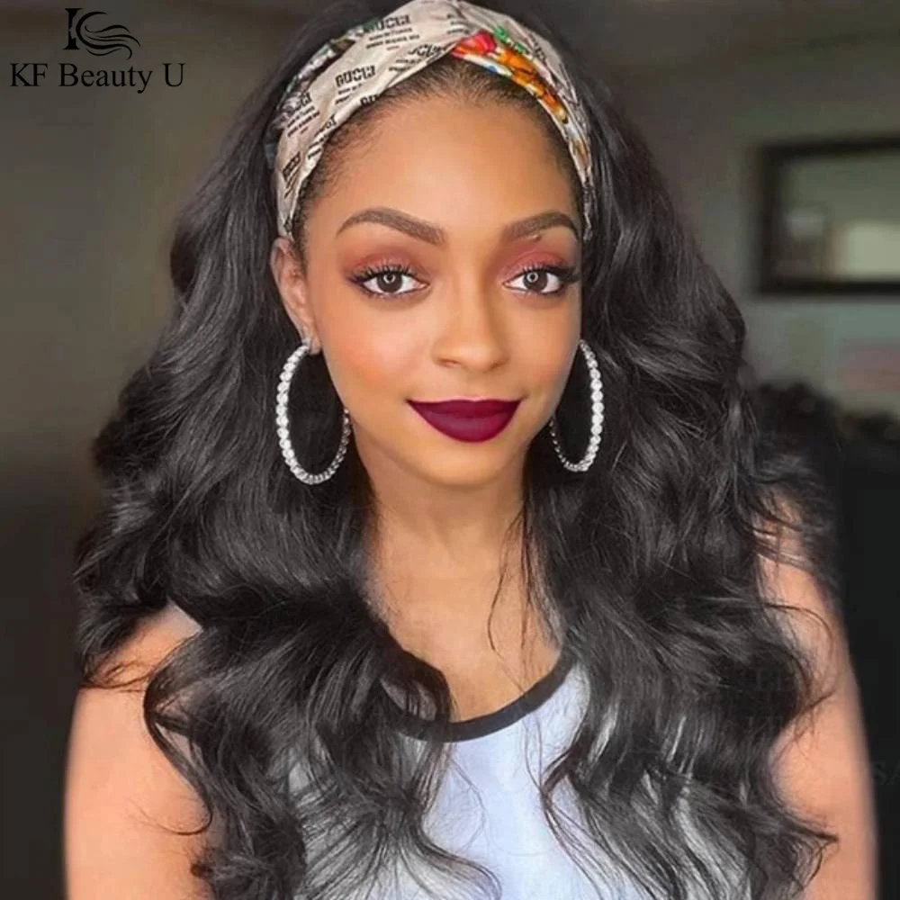Объемная волна парик с головной повязкой человеческие волосы парики для черных женщин индийский манекен для шарфа парика без геля бесклеевая Remy человеческие волосы парики KF BeautyU