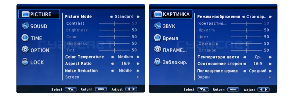 * При размещении заказа укажите нужный вам стандарт телевизора.