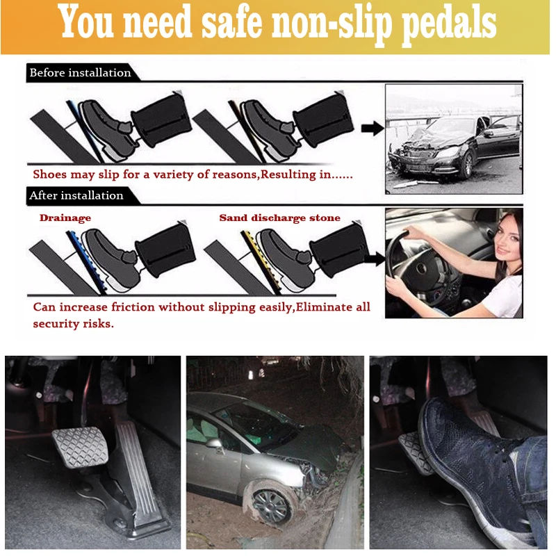 Для педали тормоза: Пожалуйста, Оторвите оригинальную резиновую крышку автомобиля, чтобы соответствовать продукту.