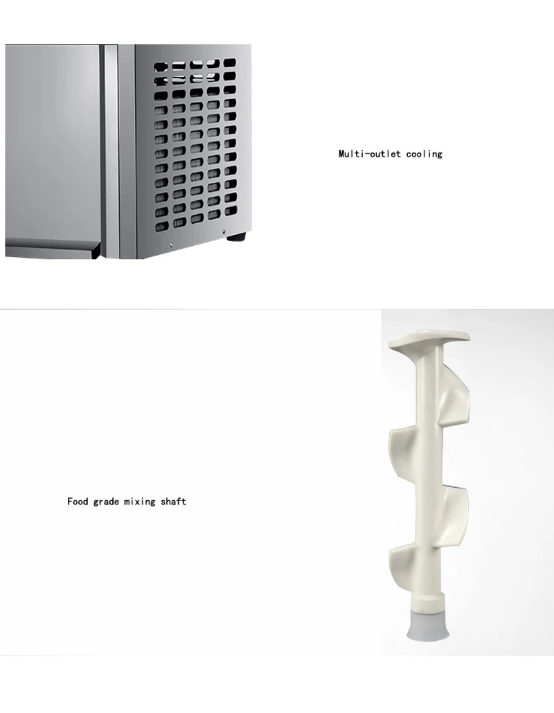 Модель: BL25Y Материал: нержавеющая сталь Материал бункера: пищевая нержавеющая сталь Напряжение: 220V50HZ 110V60HZ Мощность: 1200 Вт Выход: 18-22 л/ч Вместимость бункера: 3л * 2 Объем замерзающего цилиндра: 1,8 л * 2 Система охлаждения: с воздушным охлаждением Компрессор: Panasonic/Gree Хладагент: R22 / R410a Размер изделия: 53*40*76 см Вес: 56 кг