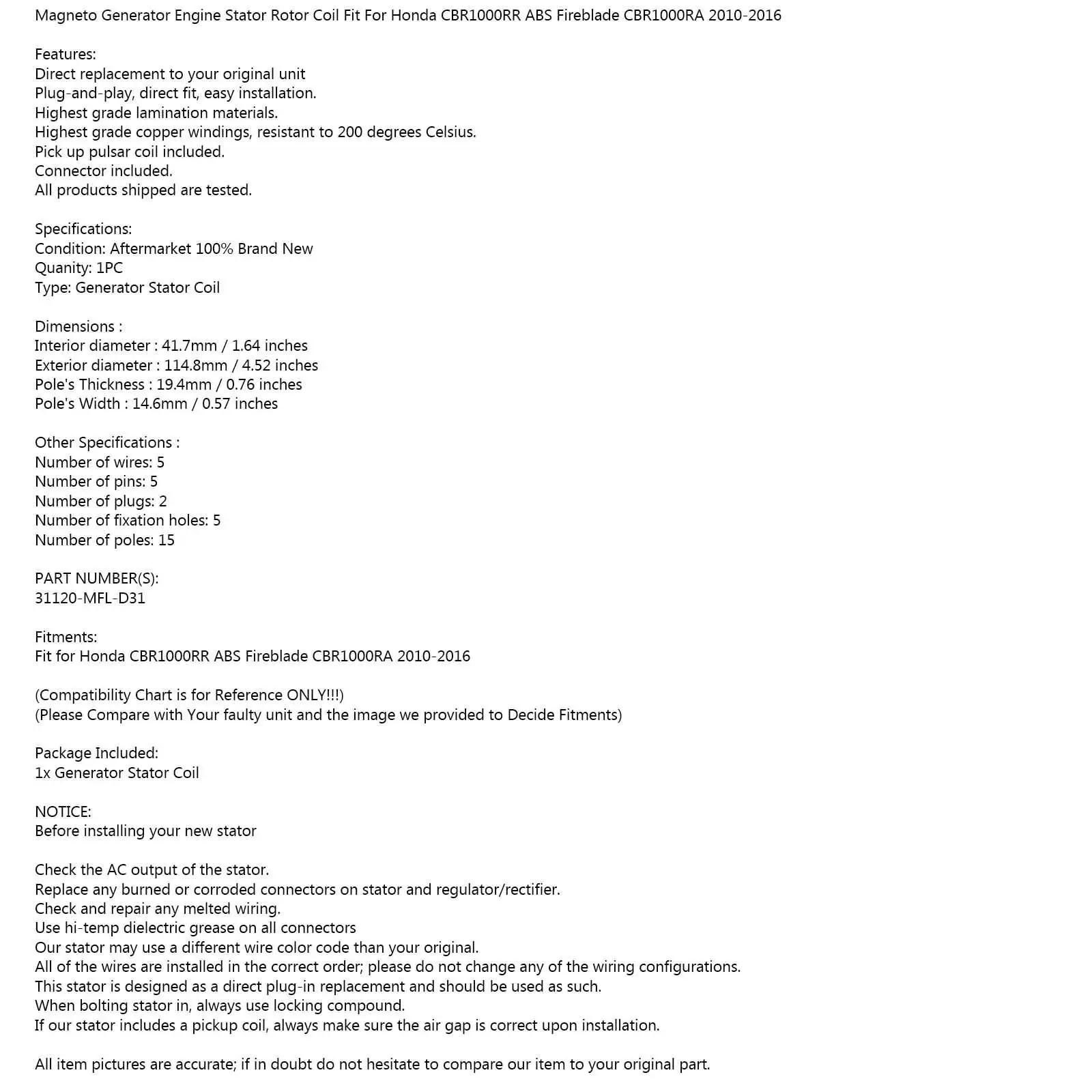 Все фотографии товара являются точными; Если вы сомневаетесь, сравните наш товар с вашей оригинальной частью.