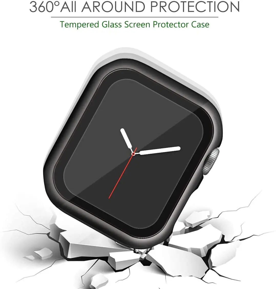 Закаленное стекло + чехол для Apple Watch 5 4 44 мм 40 мм iWatch 3 2 1 42 мм 38 мм защита экрана + чехол бампер аксессуары для apple watch