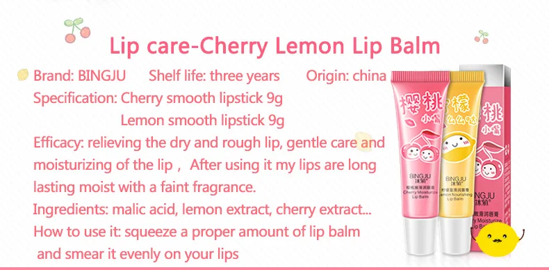 Название: лимонный питательный бальзам для губ/вишневый увлажняющий бальзам для губ