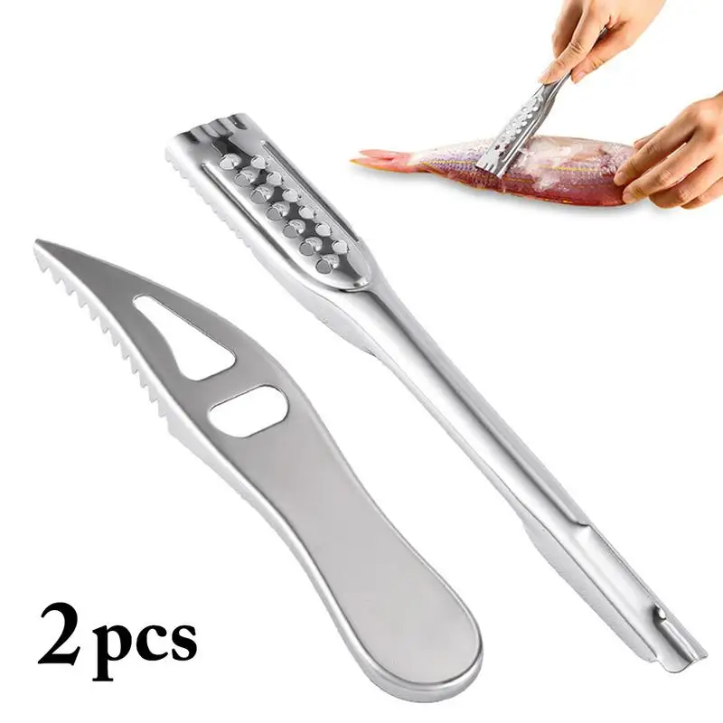 2 шт. Нержавеющая сталь очистки рыбьей чешуи кожи скребок нож для удаления Ножи