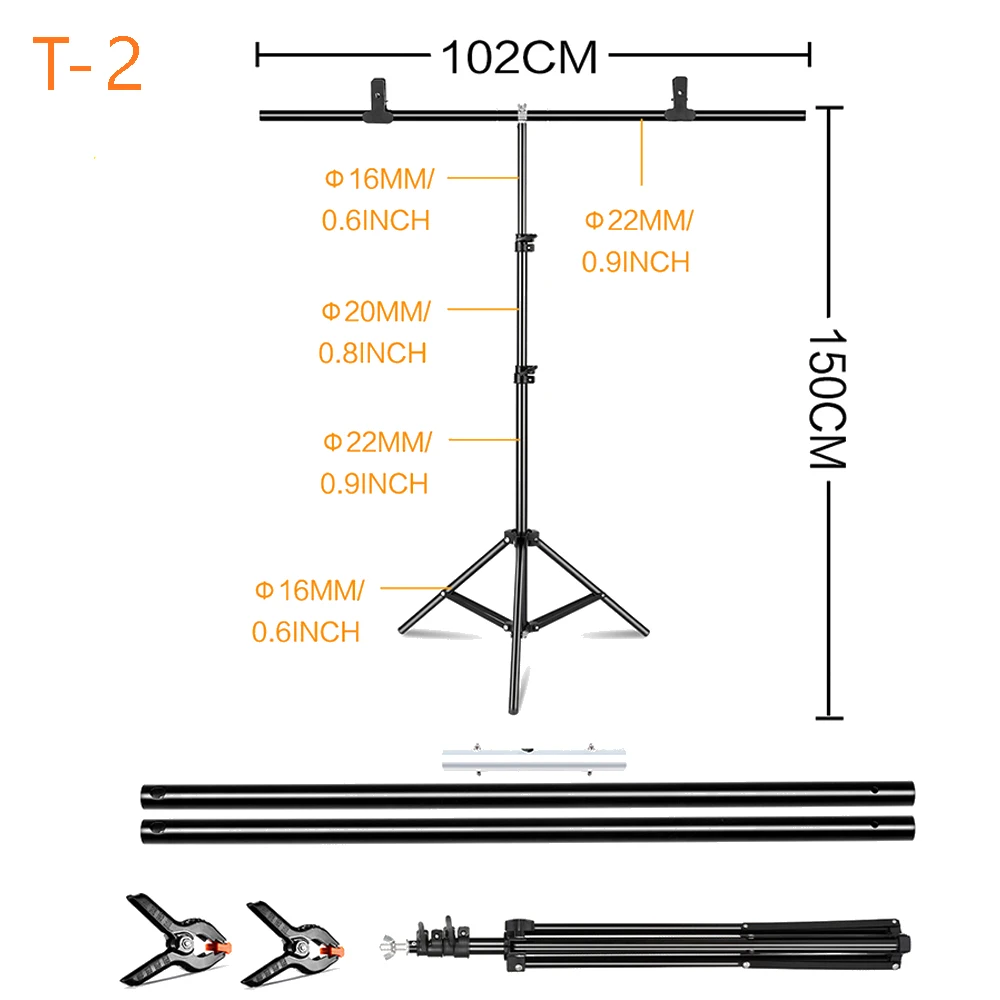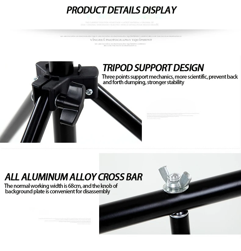 Эта подставка для фона используется для профессиональной фотостудии. Он очень подходит для съемки вещей и портретов, удобен в хранении и переноске. Светильник штатив: несколько размеров, регулируемый, стабильный и прочный. Перекладина: легко регулировать и устанавливать.