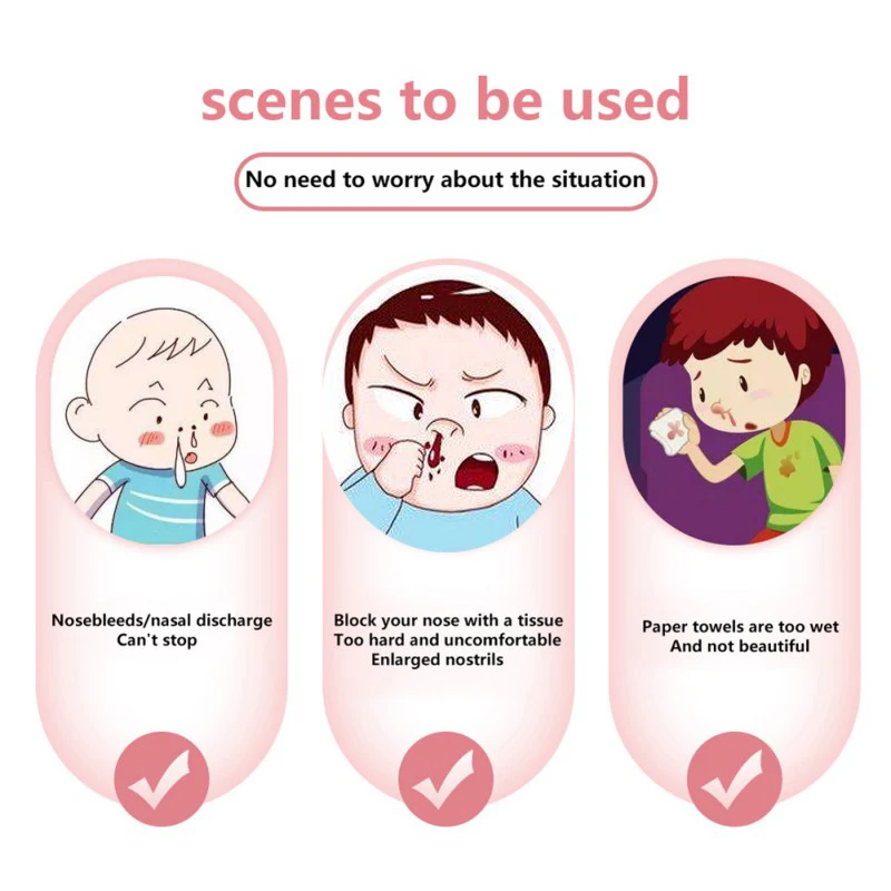 1. Используйте сцену, не нужно иметь следующие сцены: носовое кровотечение/нос не может жить; 2. Чистый хлопковый материал, не слишком аллергический, не повреждает кожу