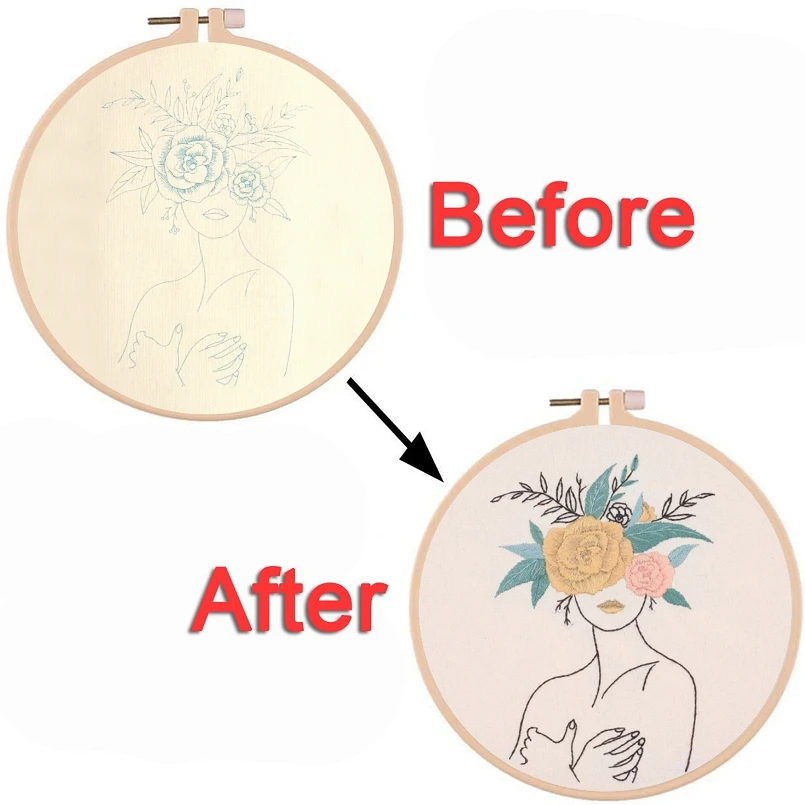 3 шт., Набор для вышивания женщин, 1 обруч, одежда для вышивки с рисунком, цветные нитки и инструменты, Инструкция на английском языке