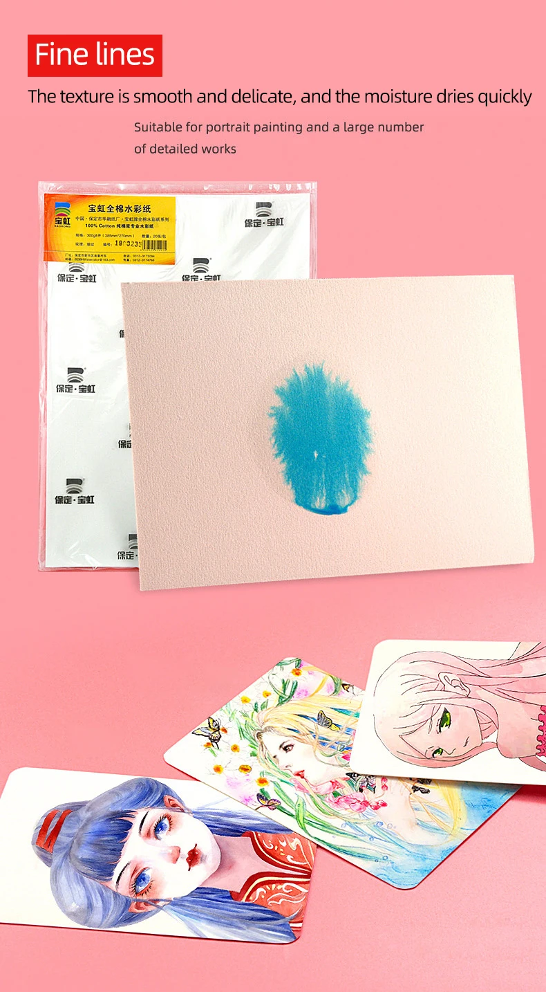Акварельная бумага BAOHONG Комплект 10 листов хлопок 100% 200 гр/м.кв. Мелкозернистая
