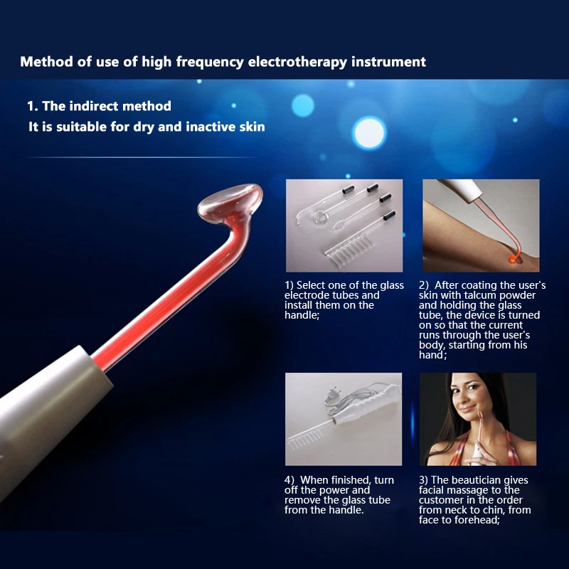 Высокочастотный гальванометр также известный как высокочастотный гальванометр, который в основном состоит из высокочастотной осциллирующей цепи и сопротивления конденсаторов и полупроводниковых устройств. Кроме того, он оснащен изолирующей ручкой и стеклянным стержнем, который можно вставить в электрод. В ручке находится трансформатор-усилитель напряжения, и одна сторона ручки снабжена линией через выходную цепь. После прибора в соответствии с общим, нажмите переключатель, под действием высокочастотных осцилляционных плат, производят непрерывный высоковольтный высокочастотный ток, Сделайте разрядку стеклянного электрода и ультрафиолет, кожу под токовым стимулированием, частичные периферические кровеносные сосуды будут попеременно сокращаться и расширяться реакцией, edm для того чтобы сделать кислород в ионизации воздуха и произвести озон, таким образом, играть роль улучшения кровообращения и стерилизации и anti-inflammation.Suitable для лечения акне и кожи, Он имеет долгую историю применения в красоте.