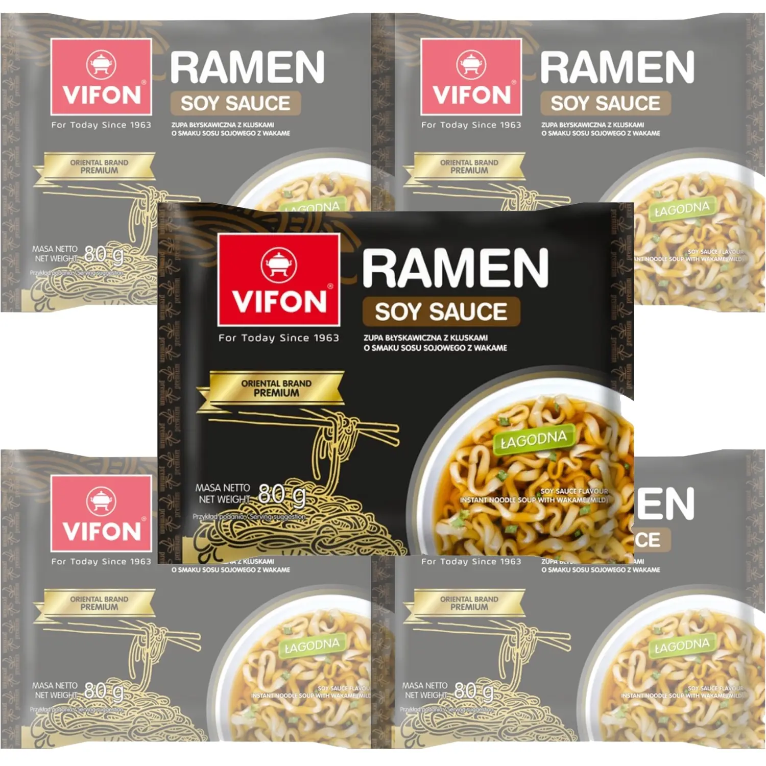 Набор из 5 упаковок Лапши быстрого приготовления "Рамен" с соевым соусом и морскими водорослями. Компания VIFON – одна из первых компаний во Вьетнаме, которая ориентирована на выпуск традиционной лапши быстрого и простого приготовления.