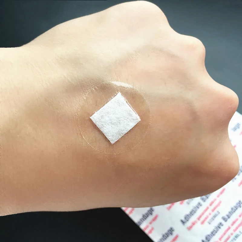 Наведите ленту-помощь поднятая средняя часть очистила рану, повязка-помощь на коже, и будет создавать