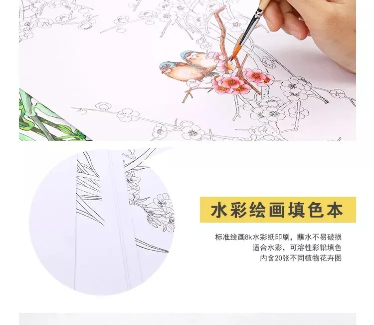 Акварельная бумага для взрослых, 20 листов, 8K, Цветочная серия для детей и взрослых, игрушки «сделай сам», Школьное ремесло, художественный Рисунок, Dupply