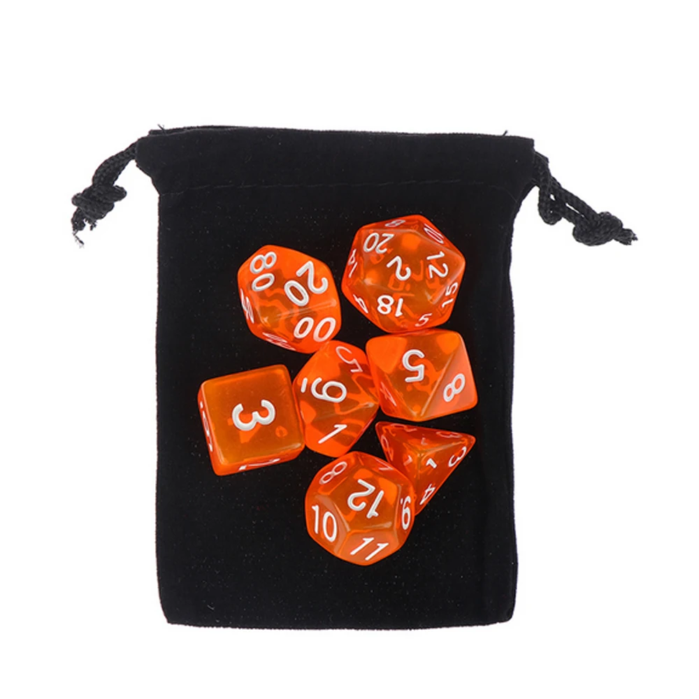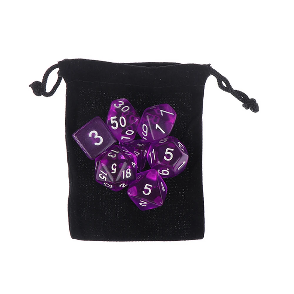 Поставляется с 7 различными игральными костями: 4, 6, 8, 10, 12, 20 боковыми игральными костями и процент (%)