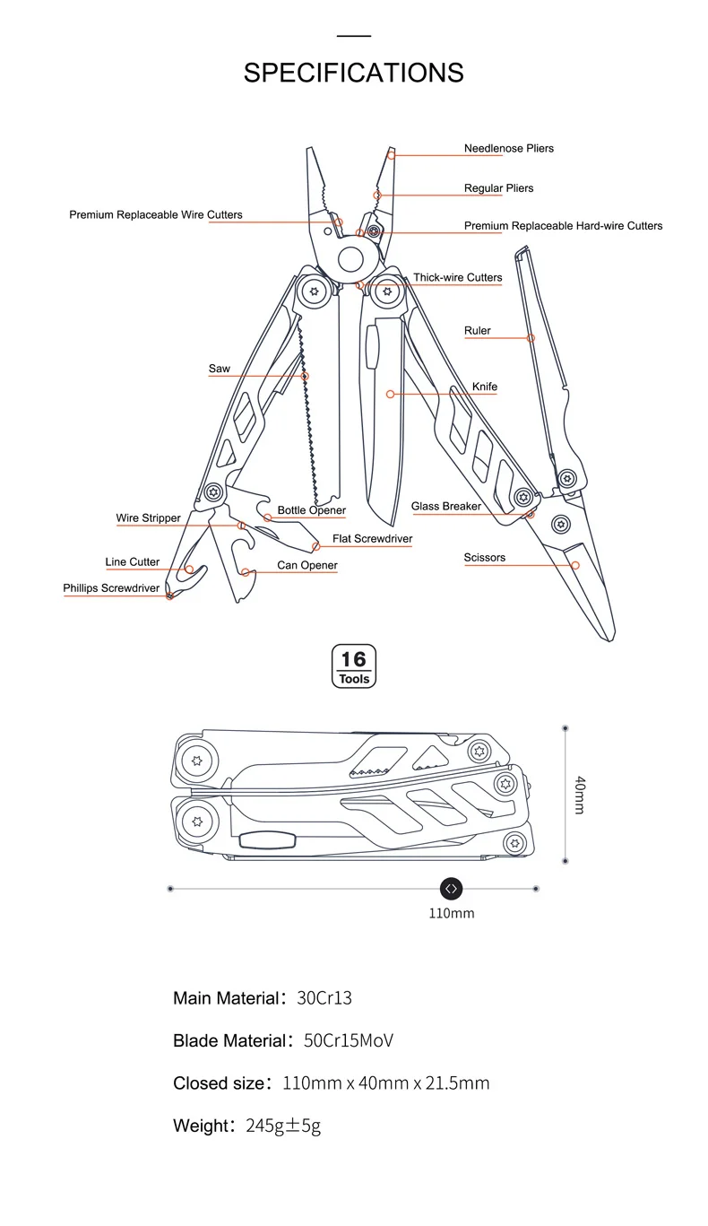 Тип: 10 в 1 многофункциональные инструменты