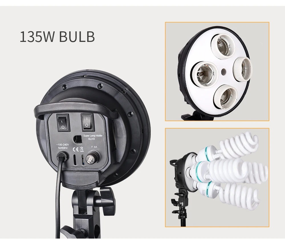 Софтбокс с четырьмя лампами подходит для съемки в фотостудии.❥Подходит для 4 ламп, Цоколь E27 подходит для большинства осветительных приборов.❥Безопасный и надежный светильник прост в эксплуатации.❥Перед установкой или удалением ламп Отключите кабель питания и подождите, пока лампы остынут.❥Лампы нагреваются после освещения в течение определенного периода, не прикасайтесь.❥Это устройство не является водонепроницаемым, не ставьте легковоспламеняющиеся предметы рядом с ними.❥Не используйте его в дождь или туман.