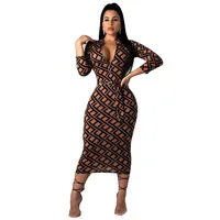 Модные платья миди с круглым вырезом и длинными рукавами, женские платья миди с геометрическим принтом и буквенным принтом, сексуальные платья, вечерние платья для ночного клуба 2020