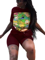 4xl 3xl шорты наборы 2021 Мода Мультфильм губы печатных О-образным вырезом короткий рукав свободная футболка Топы для женщин 2 шт наборы одежды размера плюс