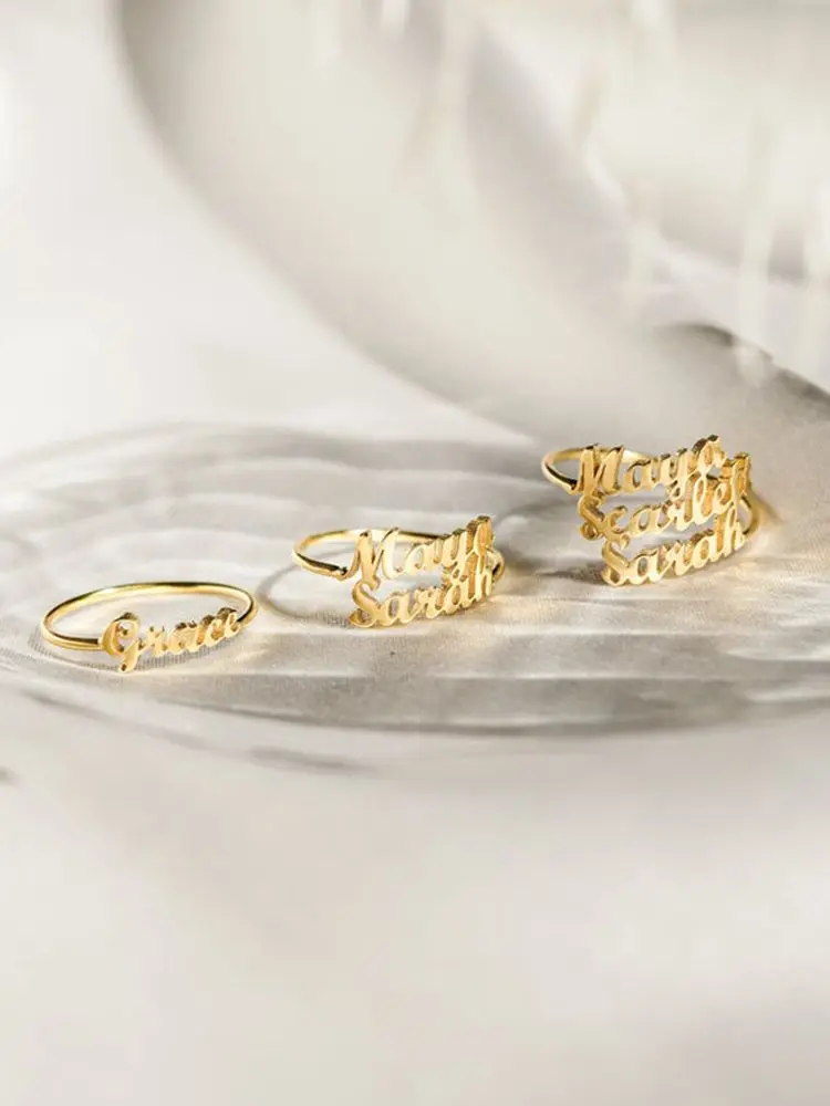 Двойное кольцо JUJIE из нержавеющей стали с именем регулируемое золотого цвета