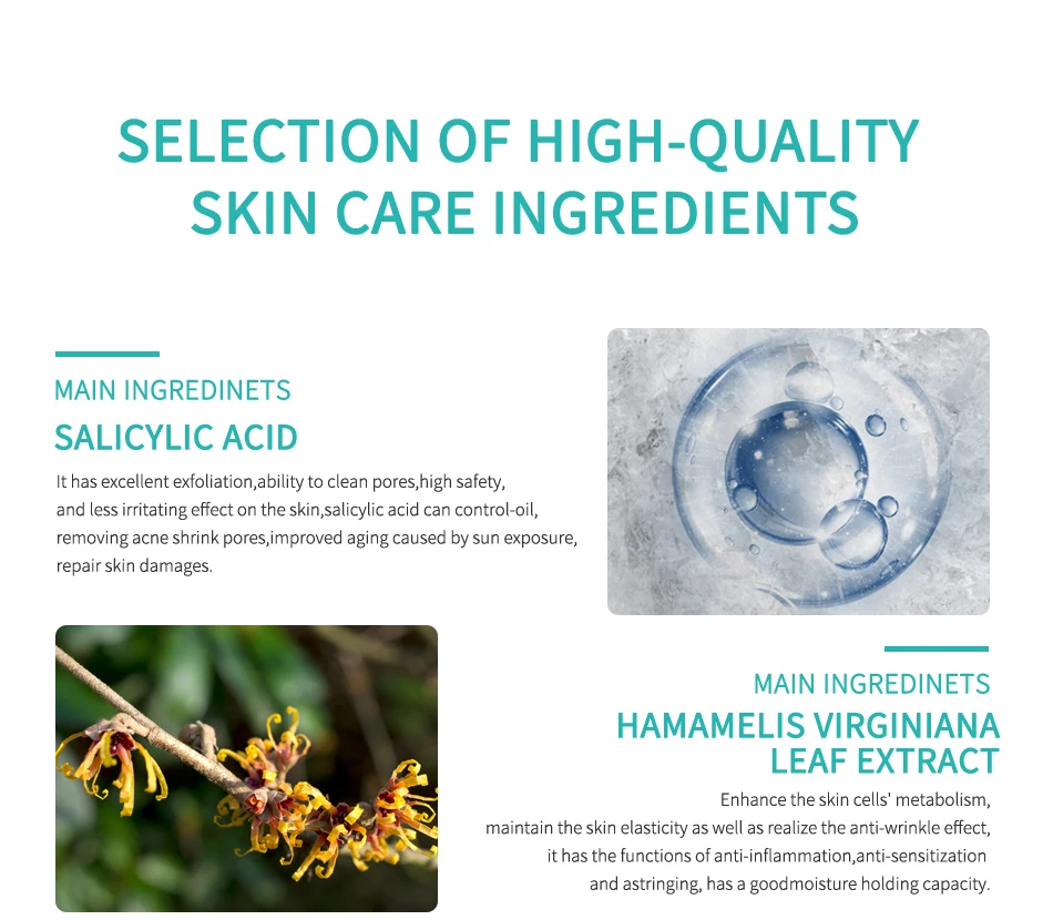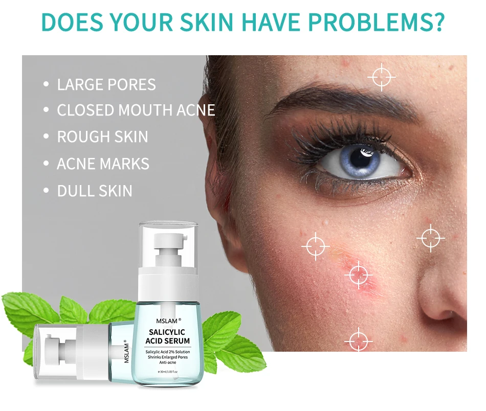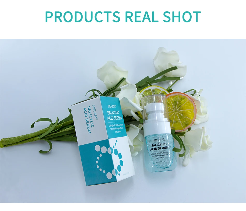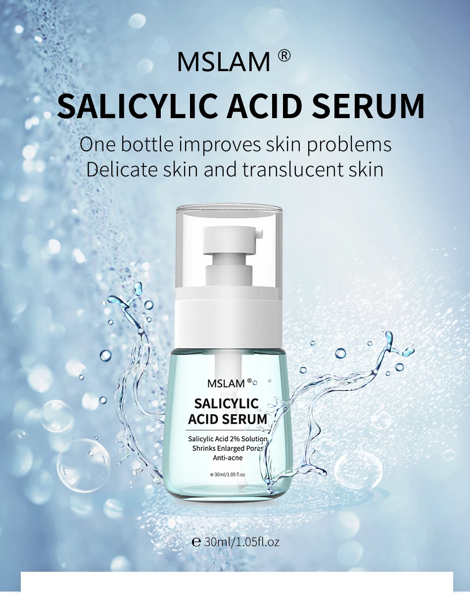[Product Name]: сыворотка салициловой кислоты MSLAM [Характеристики] : 30 мл/1. 05 fl.oz [эффекты]: увлажняющая и очищающая текстура, содержит 2% экстракта салициловой кислоты и североамериканские ингредиенты золотистой сливы и пыли, капните эссенцию для добавления влаги в кожу. Отшелушивание, контроль секреции масла и уменьшение жирности кожи, салициловая кислота может эффективно проникать в поры, растворять смесь кератина и масла, очищающих поры, эффективно улучшать черные точки, улучшает поры, эффективно предотвращает засорение пор и уменьшает вероятность появления акне. Пара с экстрактом листьев гамамелиса Северной Америки делает кожу мягкой, гладкой, свежей и белой. [Ингредиенты]: вода, пропиленгликоль, бура, салициловая кислота, Лаурилсульфат Аммония, экстракт листьев хамамелиса виргинской, сульфонат аммония, экстракт портулаки олецеи, феноксиэтанол, этилгексилглицерол, ментол, PEG-40 гидро-генизированное касторовое масло, Disodium EDTA.[Применимая кожа]: Подходит для всех типов кожи.