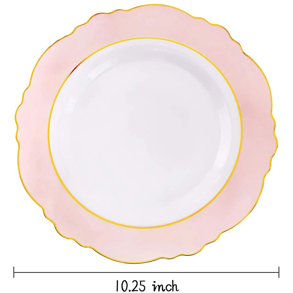 Высокое качество: Розовая пластиковая пластина, тяжелая пластина может держать любую еду. Изготовлен из одноразового и многоразового пластика, прочный и долговечный. Безопасный материал: Золотая пластиковая доска полностью изготовлена из пищевого сырья, не токсична и не содержит Бисфенол А. Используется для длительного использования. Очаровательный дизайн: Розовая одноразовая тарелка имеет дизайн с закругленными краями и изысканными деталями. Идеально подходит к любой цветовой гамме, превращая простые настольные настройки в стильный Стенд по доступной цене. Сюрприз. Подходит для всех случаев: пластиковая пластина с золотыми краями-идеальный выбор для свадьбы, помолвки, дней рождения, вечеринок, деловых приемов и т. д. широкая сторона предотвращает падение пищи и позволяет избежать смущения. Лучшее обслуживание клиентов: если ваша Свадебная пластиковая доска повреждена, пожалуйста, свяжитесь со службой поддержки клиентов, мы предоставим вам лучший сервис. Вечерние принадлежности z-one предоставляют вам большой выбор вечерние принадлежности от тарелок до очков, пластиковых чаш, пластиковой посуды и так далее.