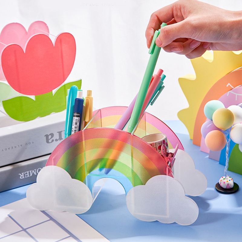 N84C Радужная форма кактуса акриловая ручка держатель милый мульти отсек карандаш коробка дети Настольный канцелярский Органайзер украшение
