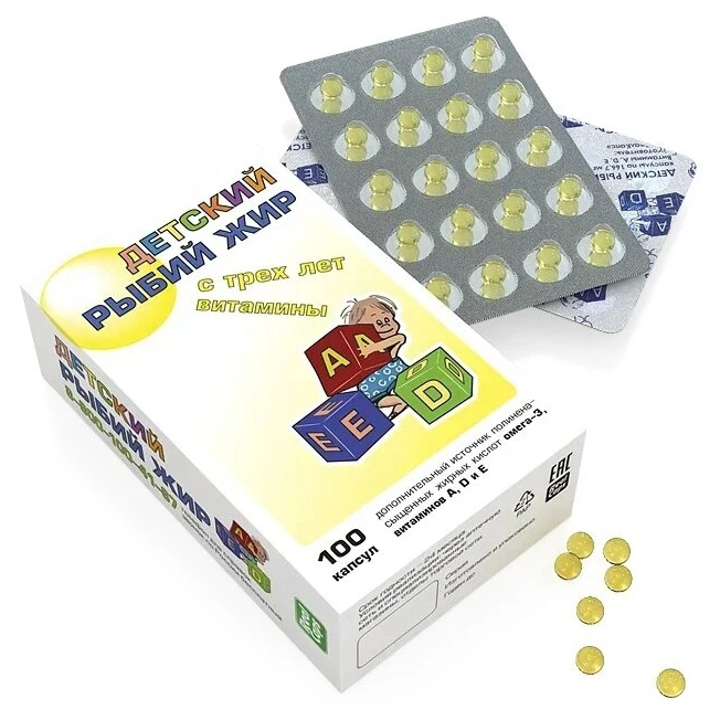 Бренд RealCaps Минимальный возраст применения От 3 лет Название препарата Рыбий жир Назначение Укрепление костей, улучшение зрения, улучшение памяти, укрепление иммунитета, общеукрепляющее, профилактика простудных заболеваний, формирование и рост костей и зубов, нормализация обмена веществ Органы и системы Нервная система, иммунная система, глаза, костная система Особые указания Перед применением рекомендуется проконсультироваться с врачом. Показания к применению В качестве биологически активной добавки к пище - дополнительного источника полиненасыщенных жирных кислот омега-3 и витаминов A, E, D. Противопоказания Индивидуальная непереносимость компонентов. Состав Рыбий жир, витамин E, витамин А, витамин D. Способ применения/введения Пероральный Тип препарата Бад Условия хранения Срок годности капсул - 24 месяца. Хранить в сухом, защищенном от прямых солнечных лучей и недоступном для детей месте при температуре не выше 25С. Форма выпуска Капсулы