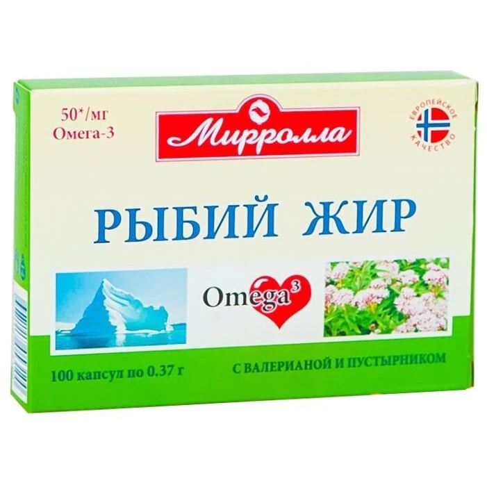 Бренд Mirrolla Минимальный возраст применения От 14 лет Название препарата Mirrolla Назначение Укрепление иммунитета, профилактика сердечно-сосудистых заболеваний, общеукрепляющее, профилактика старения, антиоксидантное и омолаживающее средство. Органы и системы Сердце, кровеносные сосуды, иммунная система Особые указания Перед применением рекомендуется проконсультироваться с врачом. Показания к применению В качестве биологически активной добавки к пище - дополнительного источника полиненасыщенных жирных кислот омега-3. Применение при беременности и кормлении грудью Противопоказано Противопоказания Индивидуальная непереносимость компонентов продукта, беременность, кормление грудью. Состав Жир морских рыб, масляный экстракт валерианы лекарственной, масляный экстракт пустырника сердечного, желатин, Е422, Е330. Способ применения/введения Пероральный Тип препарата Бад Условия хранения Хранить в сухом, защищенном от попадания прямых солнечных лучей и недоступном для детей месте при температуре не выше 25С. Фармакологическое действие Бад-источники жирных кислот, бад общеукрепляющего действия, бад поддерживающие функции иммунной системы, бад-антиоксиданты, бад поддерживающие функции сердечно-сосудистой системы, бад поддерживающие функции опорно-двигательного аппарата.