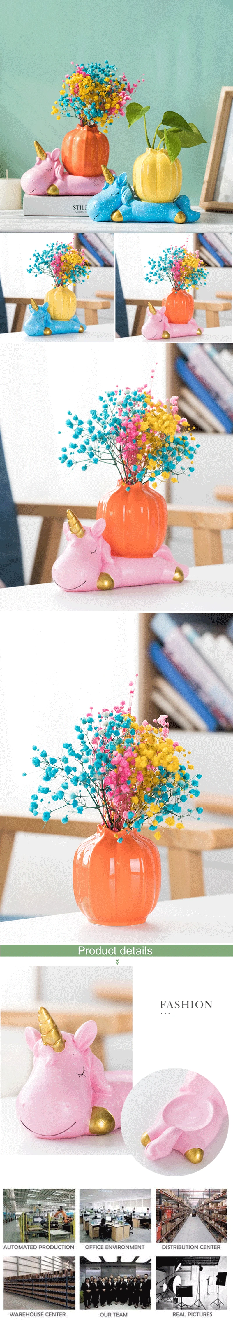 Креативный Единорог керамический орнамент зеленый ананас Гидропонные сушеные цветы композиция цветок вазы декоративные для дома аксессуары