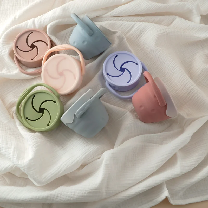 Складная силиконовая чашка для закусок, коробка для хранения, бутылка для малышей, снэк-Ловца, складная чашка для детей, не проливается, твердая пищевая мягкая крышка контейнера
