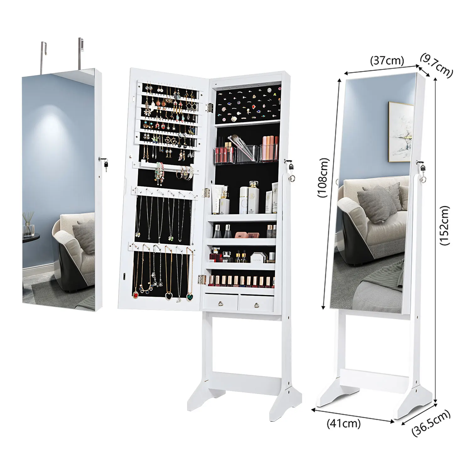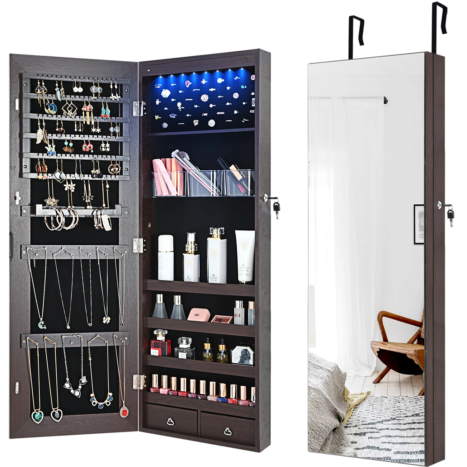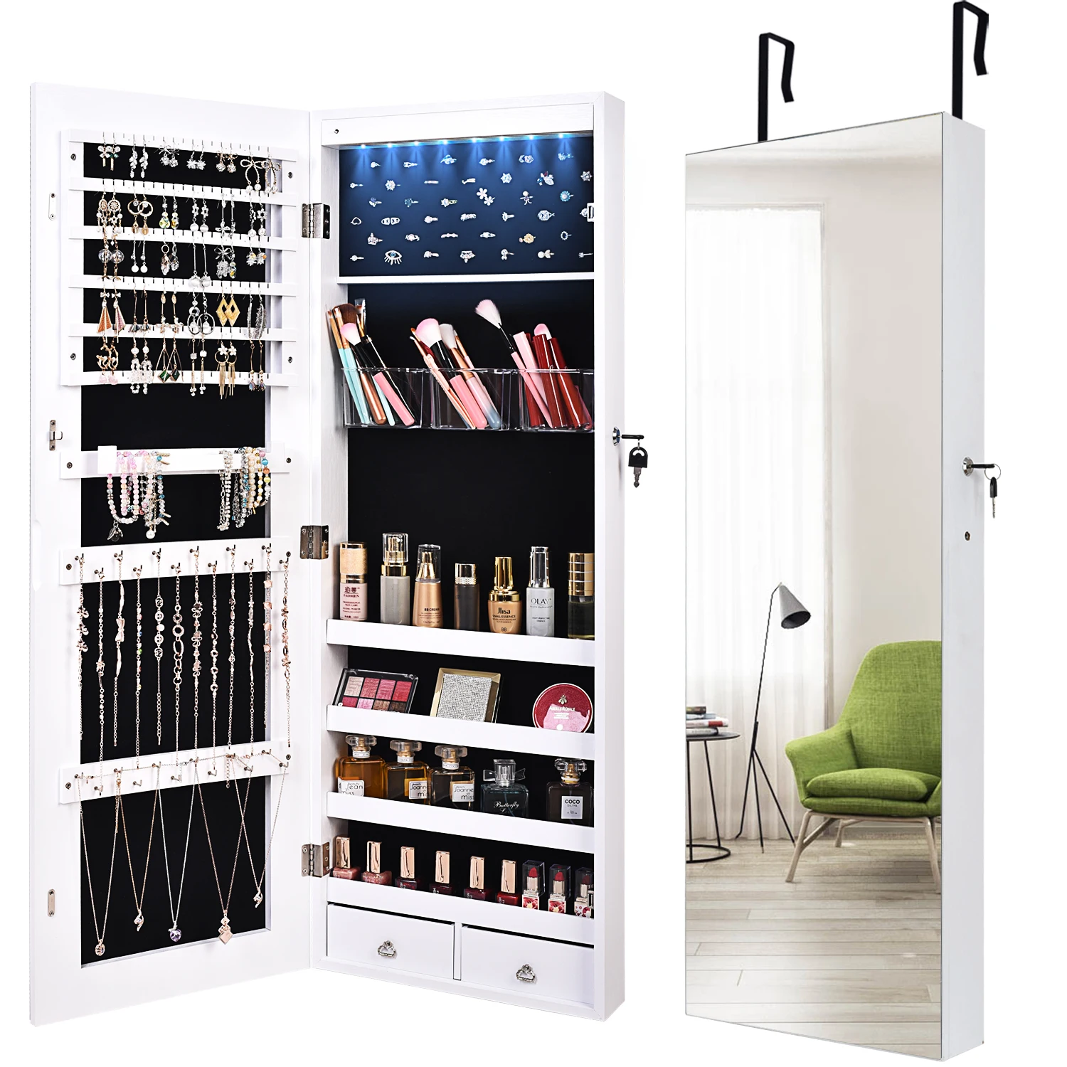 1. Когда вам нужны ювелирные изделия и косметика, пожалуйста, лицом к зеркалу и откройте дверь шкафа. Это поможет вам легко выбрать нужные вам предметы, заглянув в зеркало