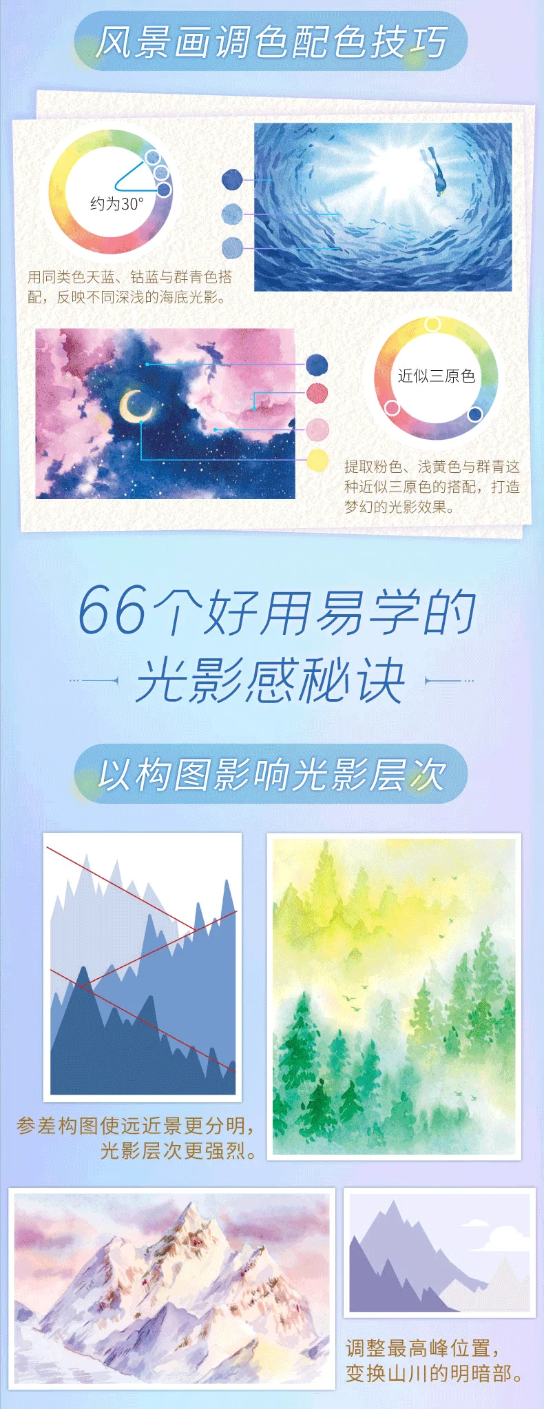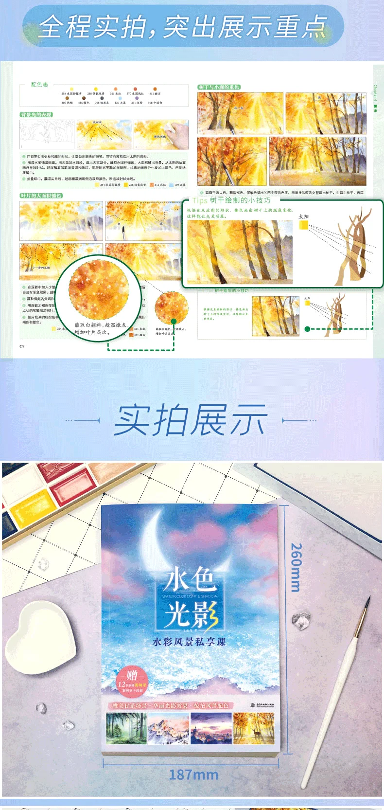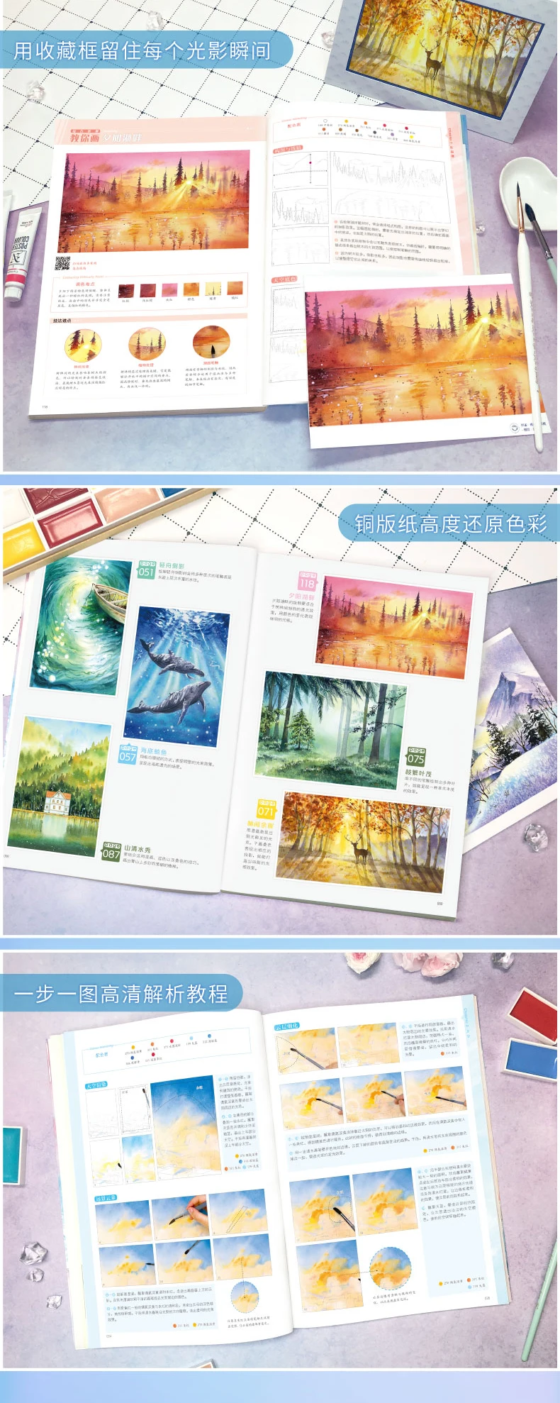 Акварельный светильник и тени акварельный Пейзаж Небо океан дерево здание частный класс живопись Рисование книги