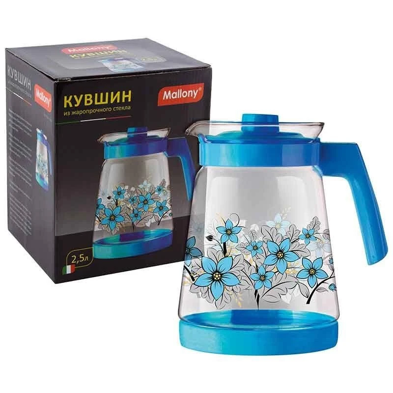 Цвет Синий Тип Кувшин Материал Стекло, пластик Количество в наборе 1.0 Материал.1 Стекло, пластик Дизайн Цветы, растения Крышка Да Объем, мл 2500.0