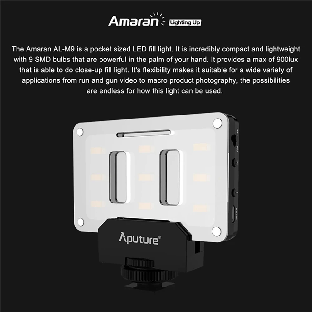 Aputure Amaran AL-M9 светодиодный видео светильник TLCI/CRI 95 + на камере заполняющий светильник 9 шт. SMD светильник s карманный светодиодный светильник ing для Canon