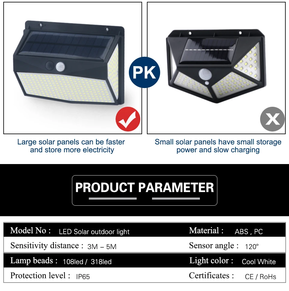 4. Водонепроницаемость IP65: солнечный светильник и солнечная панель изготовлены из водонепроницаемого материала ABS и IP65. Он может работать в различных видах погоды, таких как дождь, снег, гром и туман.