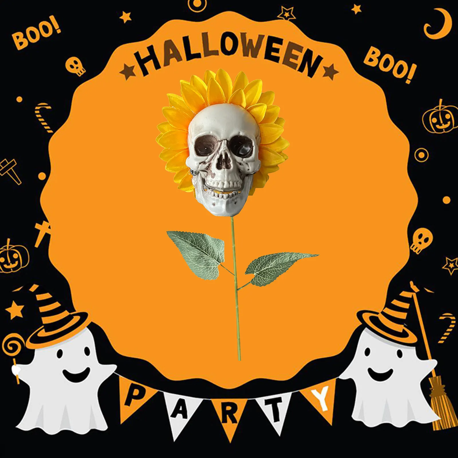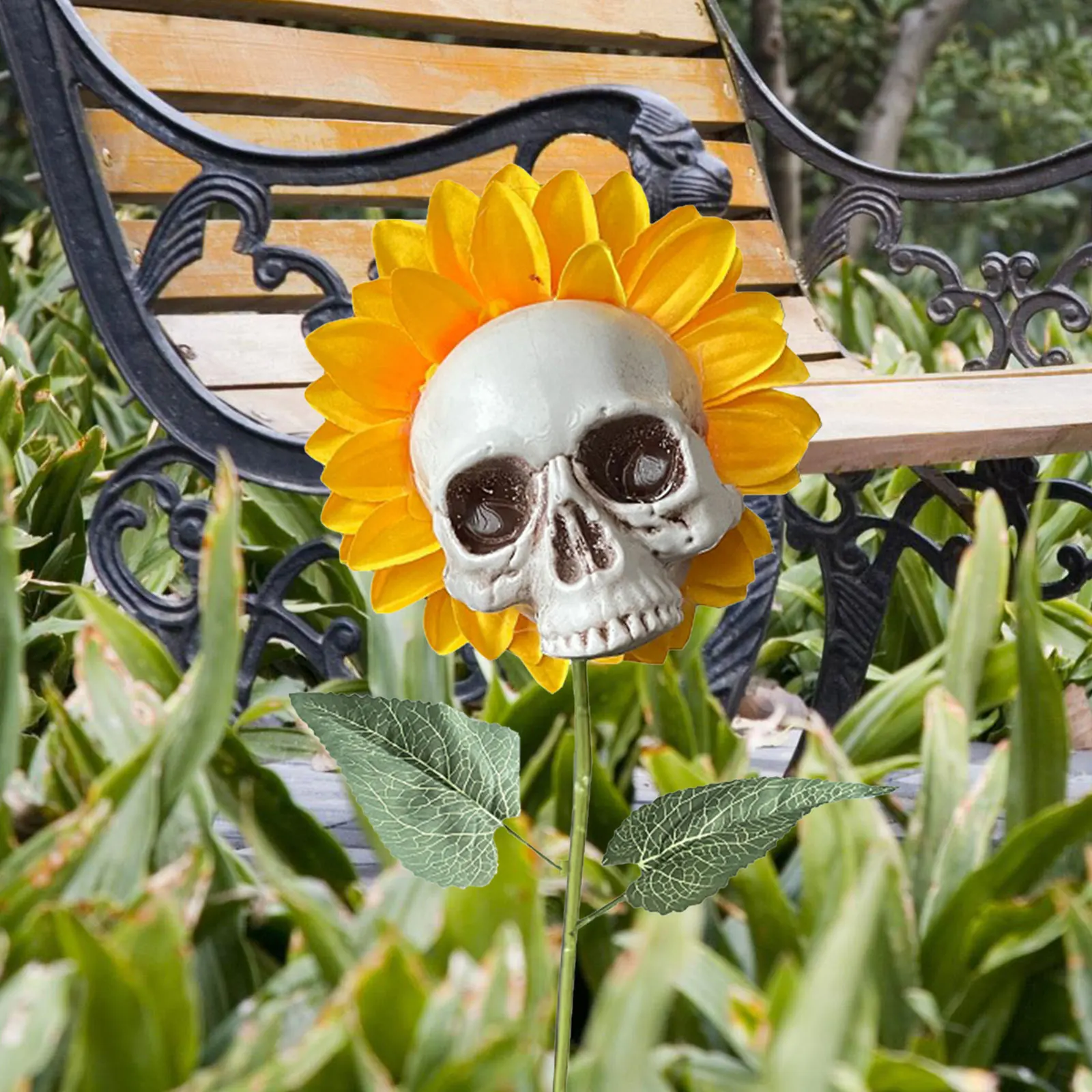 Искусственный подсолнух череп садовый декор, наружное Моделирование растения скелет Хэллоуин украшение, захватывающий двор лужайка патио кола, ужас сцена орнамент